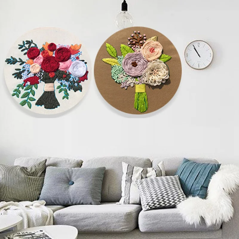 3. После завершения вышивки узор вышивки можно положить в Круглый обруч с вышивкой и повесить в гостиной или спальне в качестве украшения интерьера.