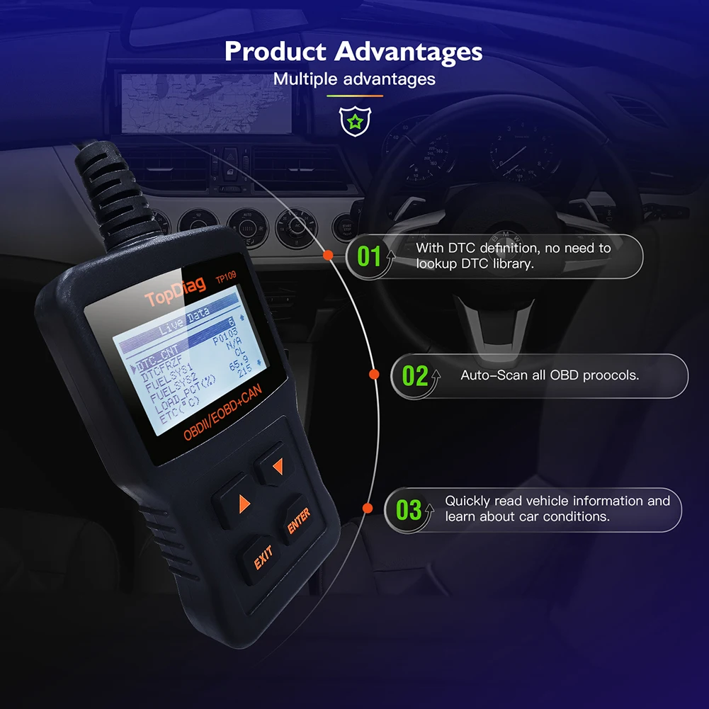 TP109 EOBD OBD2 сканер авто двигатель сканер кода неисправности может диагностический инструмент