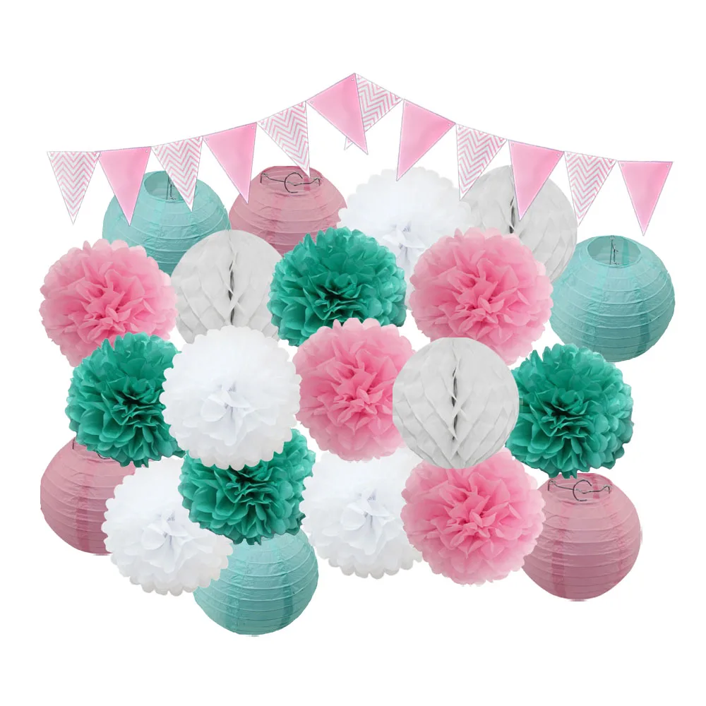 1 Набор = 6 шт 8 "бумажный фонарь + 3 шт 8" Соты + 12 шт 10 "бумажный помпон + 1 шт баннер.