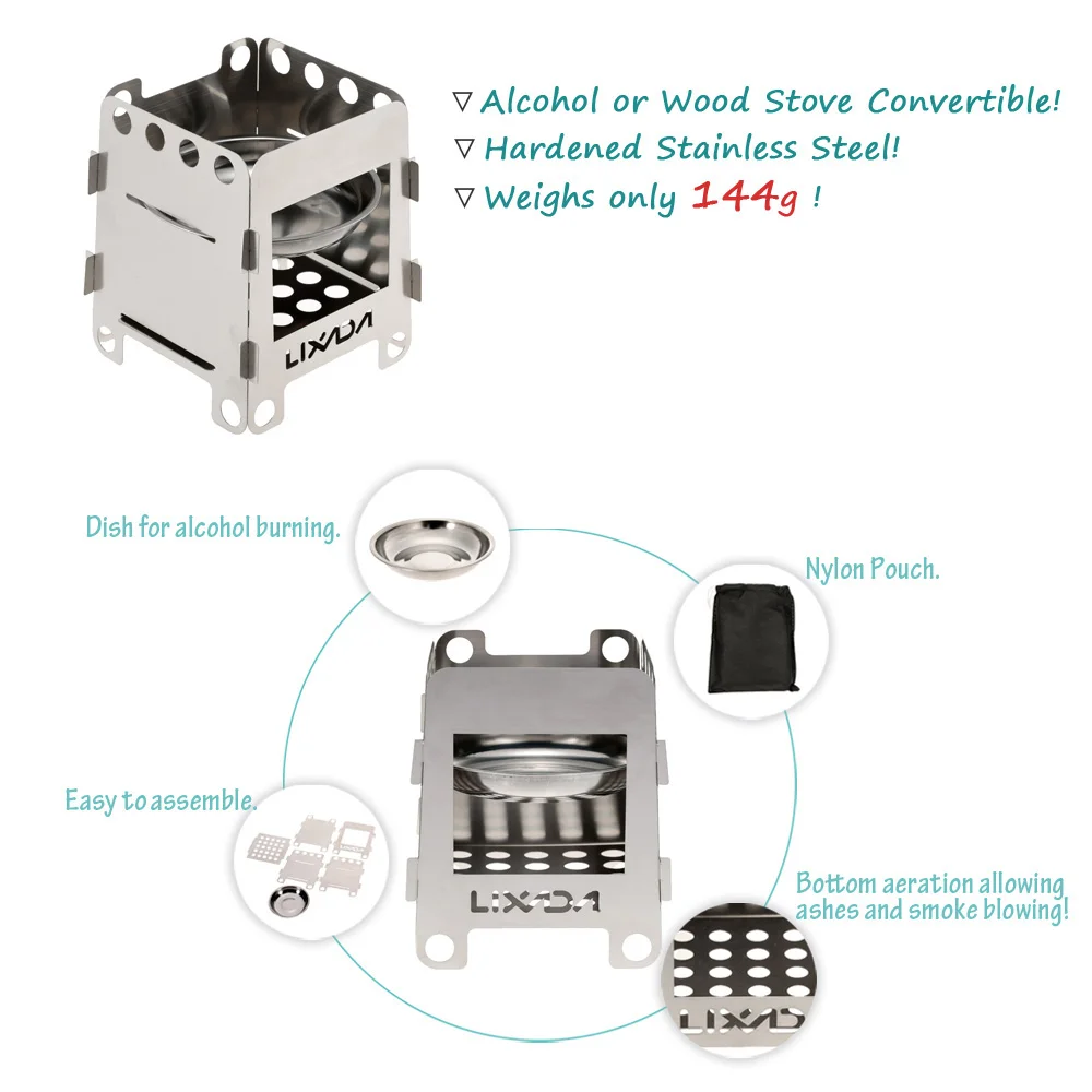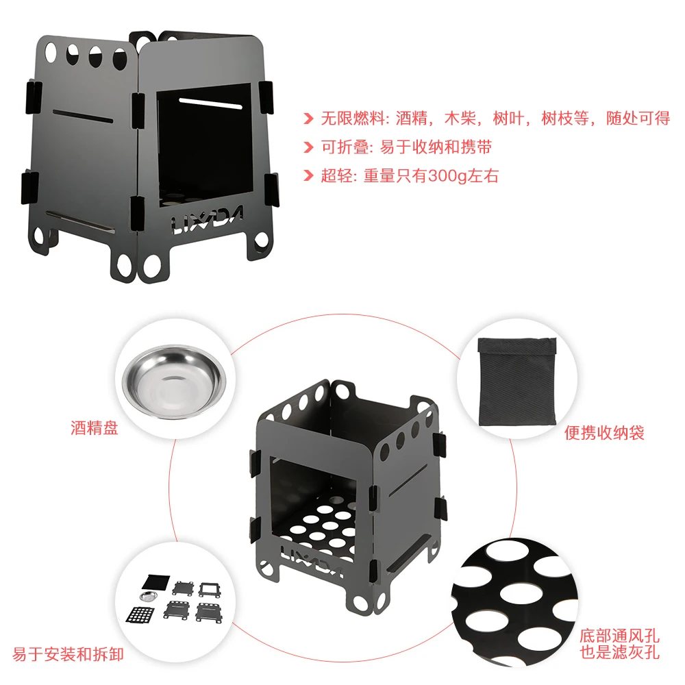 Изготовлен из закаленной нержавеющей стали 304 с черной титановой отделкой на поверхности, печь предназначена для прочной альпинизма и кемпинга.