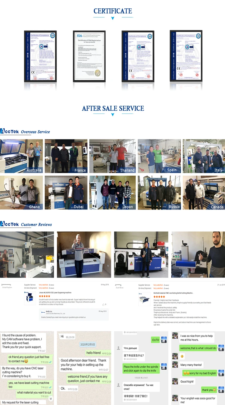 Jinan AccTek Machinery Co.,Ltd специализируется на производстве станков с ЧПУ и лазерных машин. Наша основная продукция-станки с ЧПУ AccTek, лазерная гравировка и резки. Шток или пользовательские конфигурации-наша специализация. Компоненты для наших машин получены от поставщиков мирового класса и новаторов в управлении машиной.