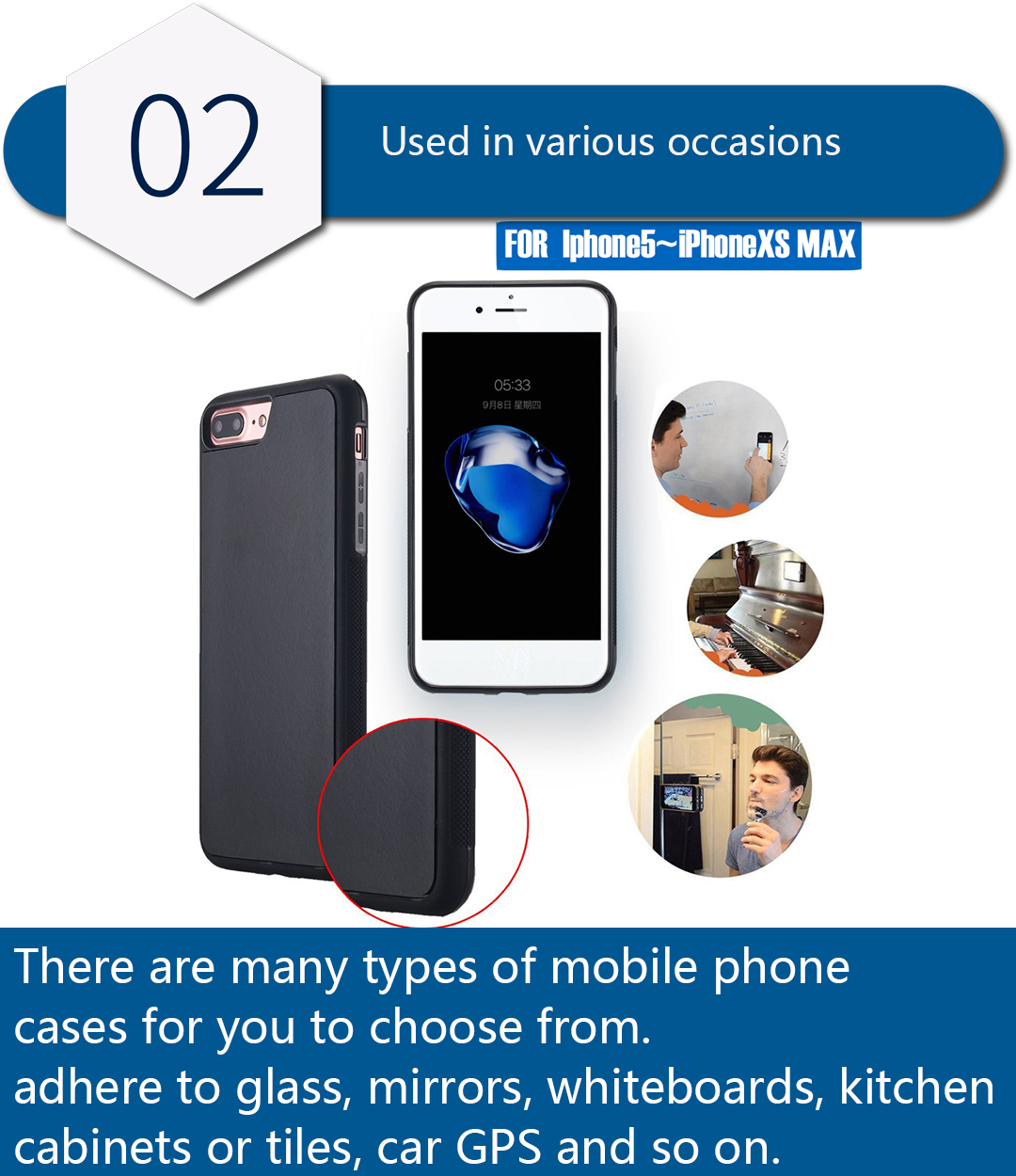 * 1. Антигравитационный чехол для телефона может быть прикреплен на гладких поверхностях, таких как стекло, зеркало, плитка и т. д., но не липкий к вашим рукам.