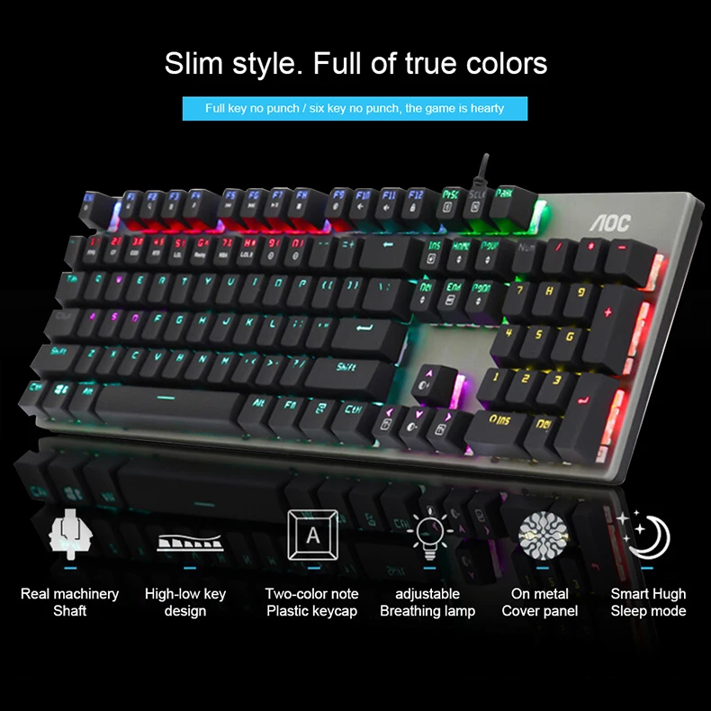 1. Клавиатура из алюминиевого сплава, более прочная и долговечная. 2: двухцветная Крышка для литья под давлением не легко стирается, высокая и низкая раскладка ключей, эргономичный дизайн 3: Интеллектуальный спящий режим, хост входит в спящий режим или режим ожидания, функция подсветки выключена, хост восстановлен в предыдущий режим после запуска. 4. Механический синий, черный, коричневый, красный переключатель