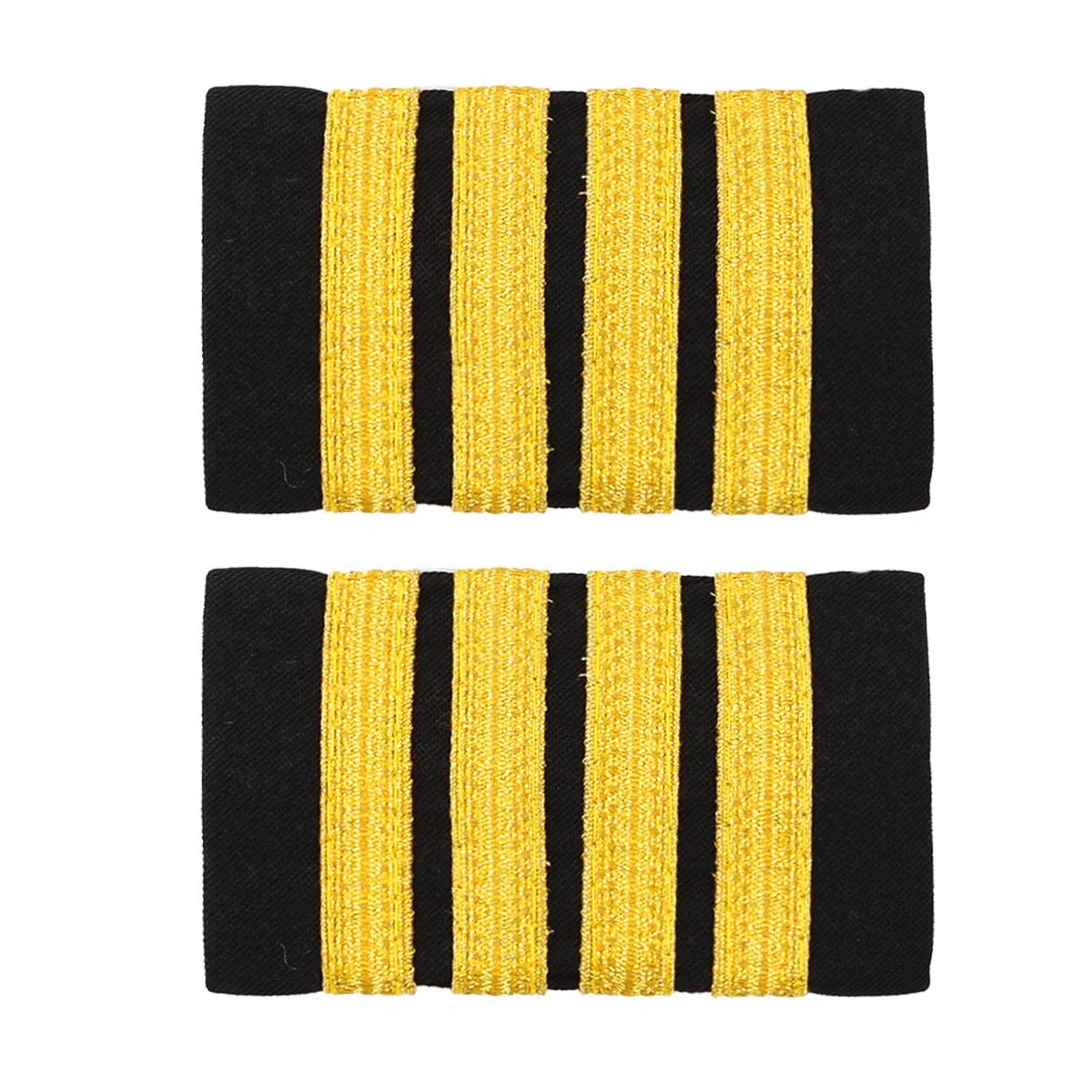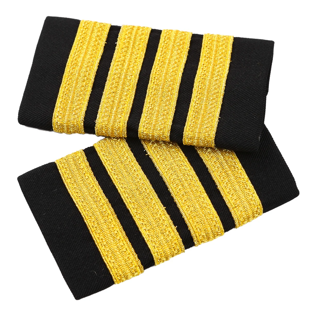 1 Pair of Professional Pilot Uniform Epaulets. Available in black fabric, with 1 to 4 gold stripes. Made of high quality polyester materials, nice seam. Stripes are reinforcement lined for a professional look. A great gift to aviators, they fit all pilot shirts.Friendly Tips: The size is measured by hands, please allow minor error of measurement. Photo color might be a little different from the actual product due to color display of different monitors.