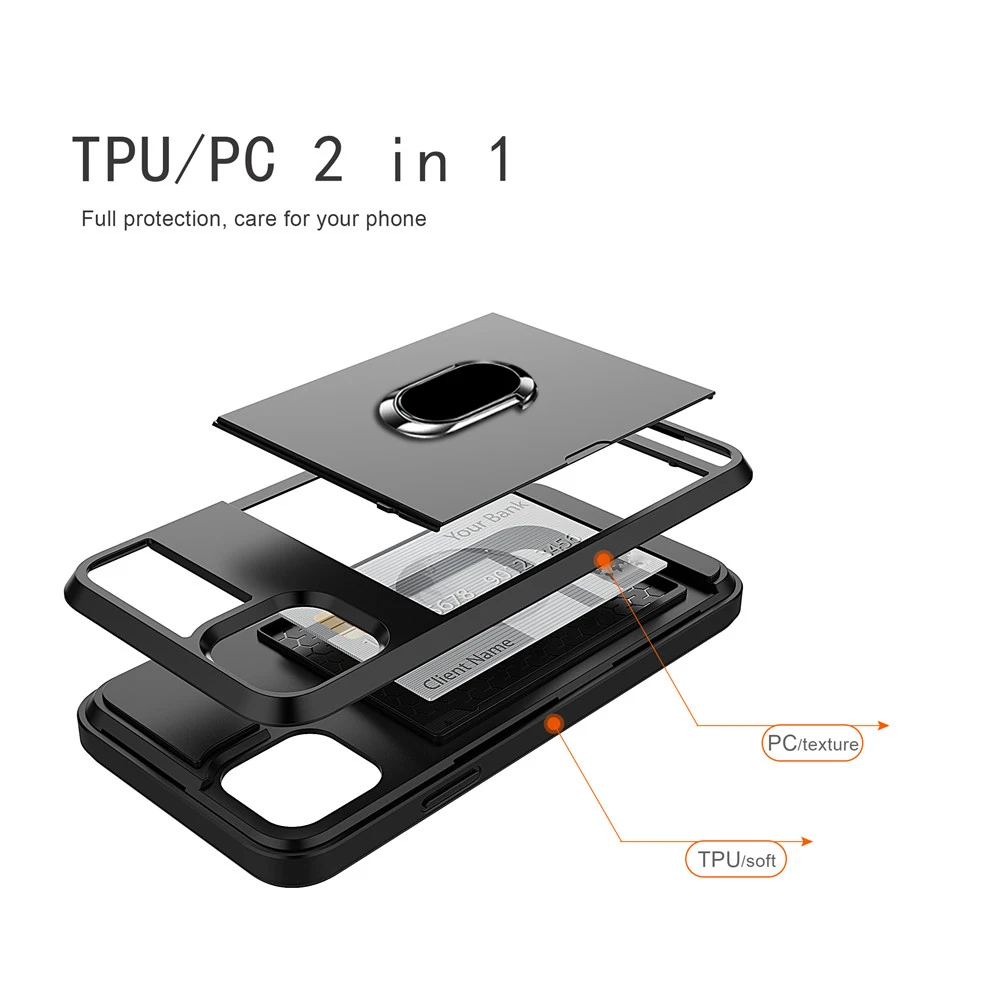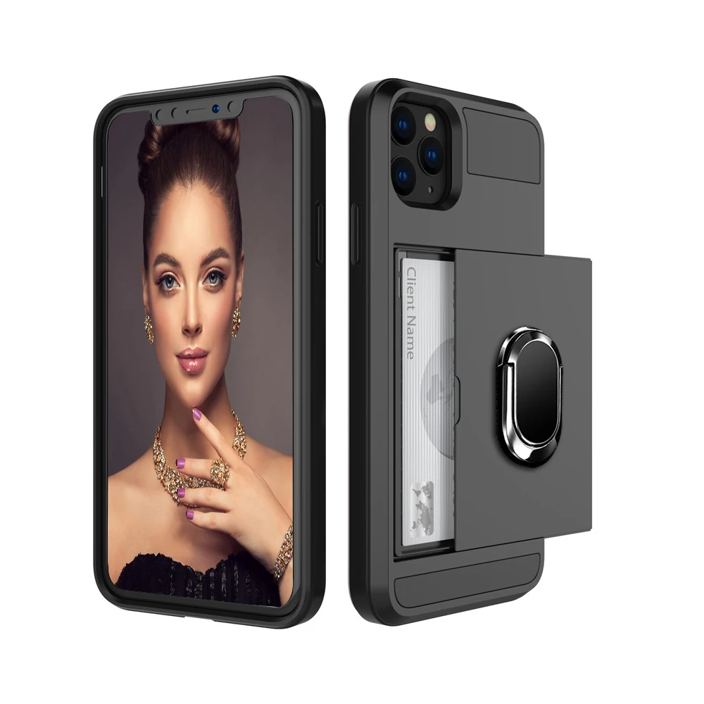 CARD STORAGE - Hidden compartment design. The slider door on the back can holds 1-2 cards securely(Credit card/ Debit card/ ID/ Drivers license/ folded cash). It's very useful and convenient for someone who doesn't want carry a wallet or a purse around