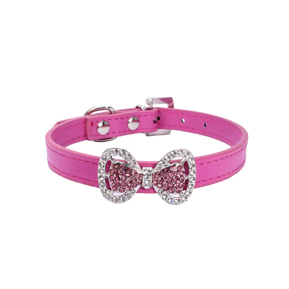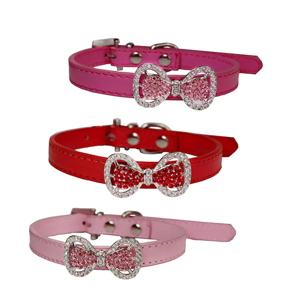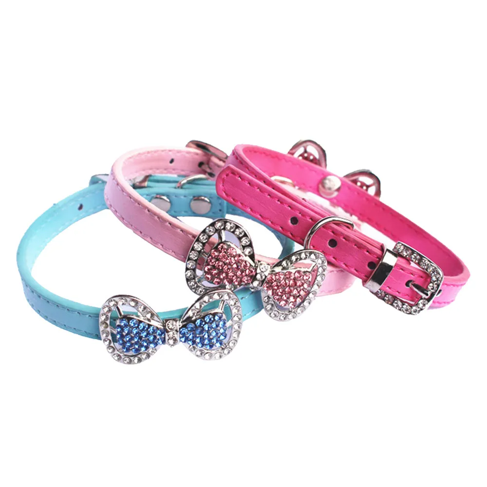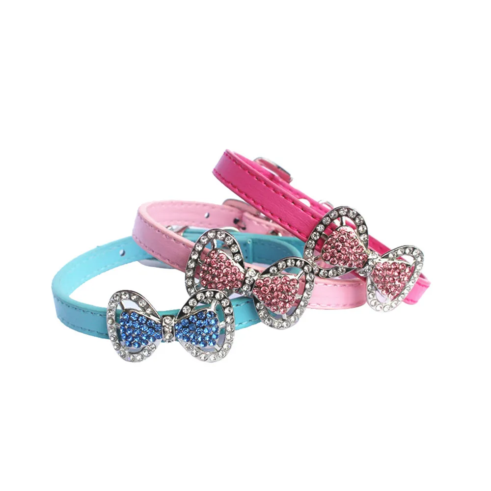 Бант Со СтразамиОшейник для собак, кошек, щенков, кожаный ошейник для домашних животных