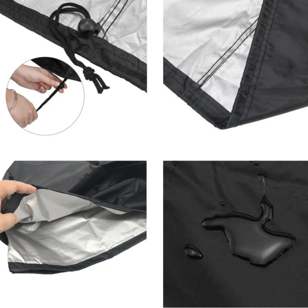 Эта крышка для гриля для барбекю изготовлена из полиэфирной ткани 210d и водонепроницаемой ПВХ-подкладки, которая устойчива к атмосферным воздействиям и пыли.