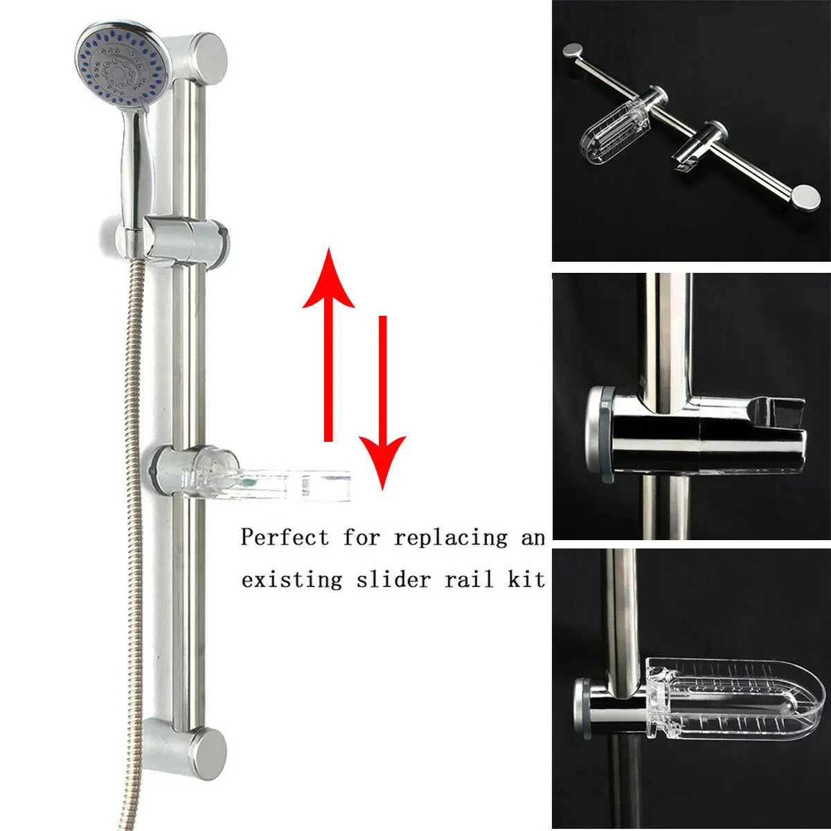 Регулируемый слайдер: легко регулировать высоту (вдоль рельсы) и угол душевые головки.