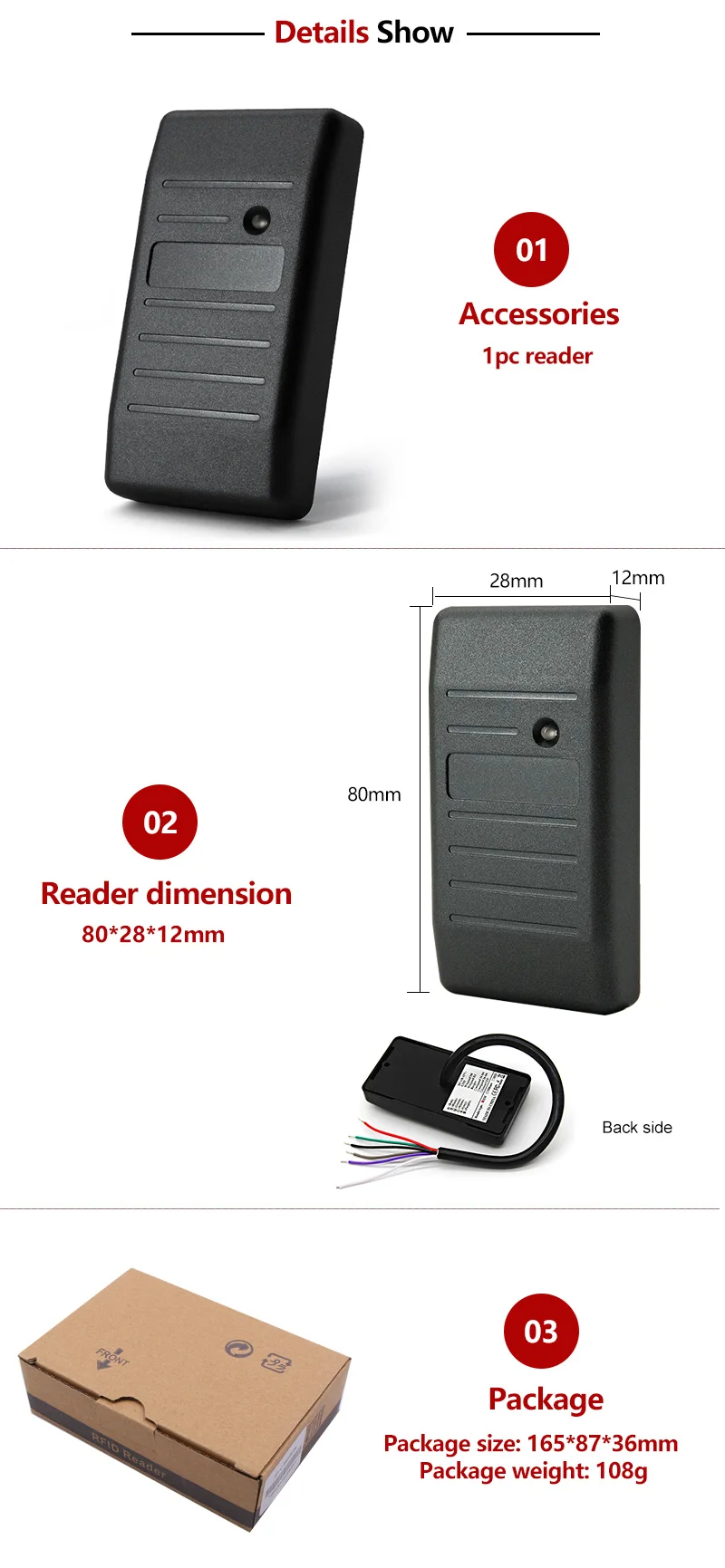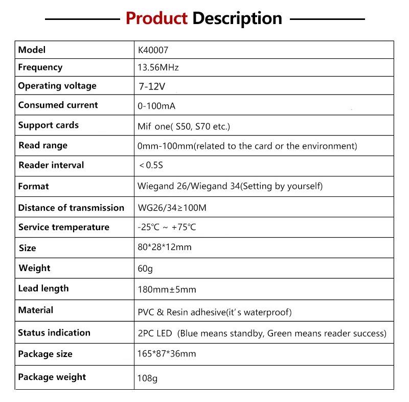 CHAFON 13.56MHz Mif One S50,S70 door access control card reader used for access control system