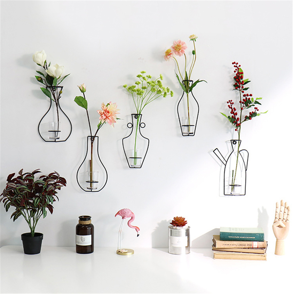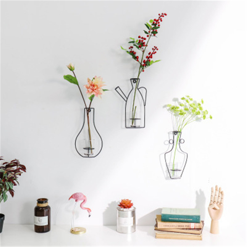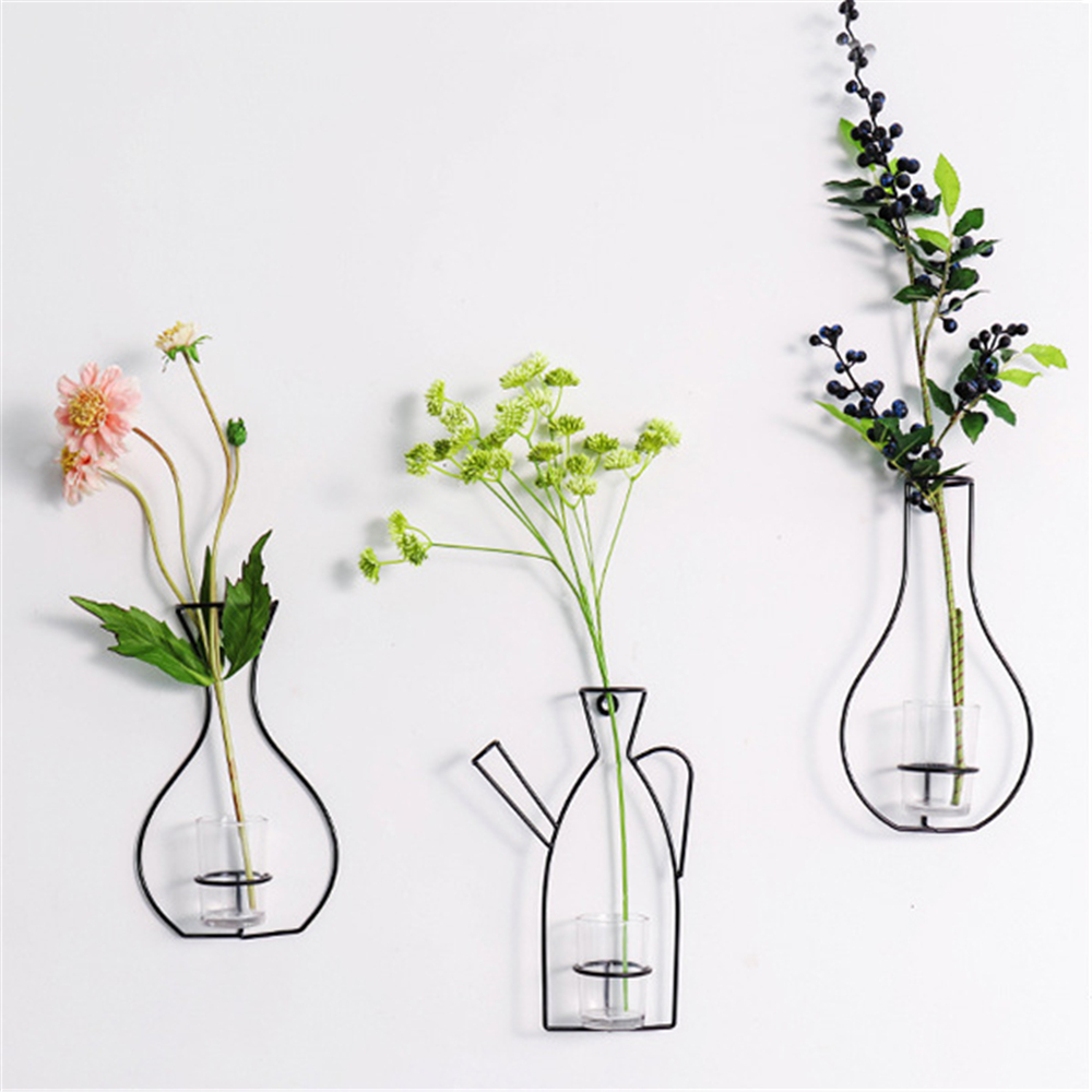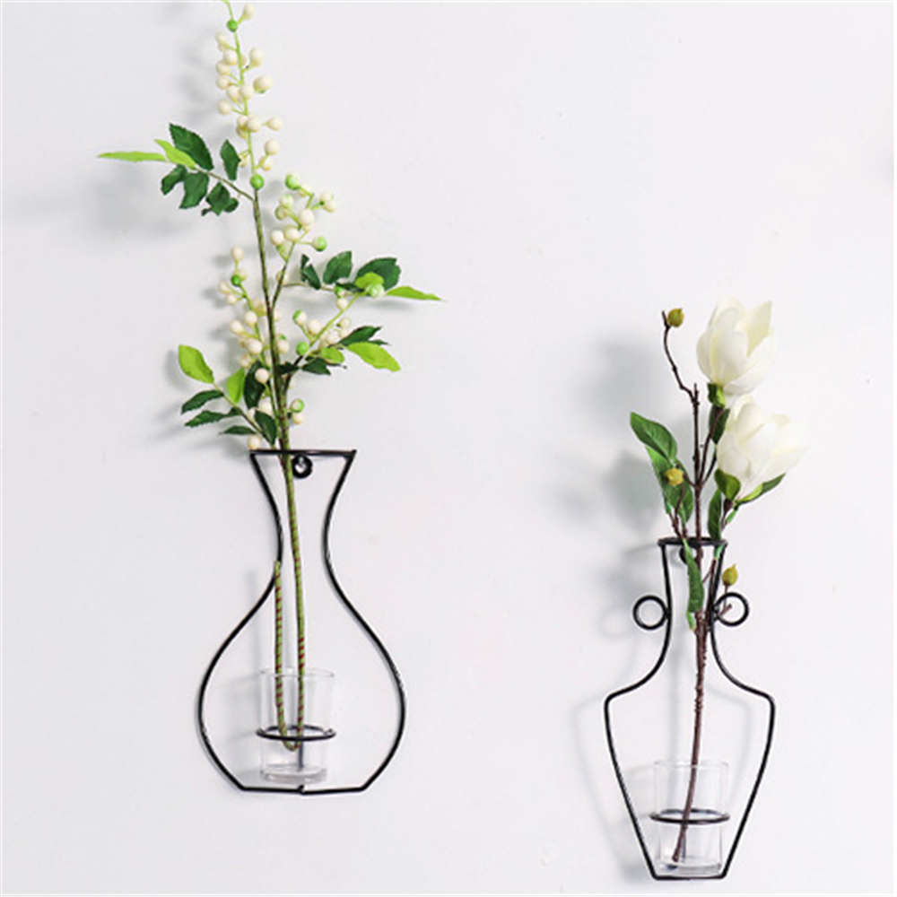 Скандинавский стиль, декоративная рамка, держатель для вазы, черная Минималистичная железная ваза, высушенные цветочные стеллажи для вазы, настенные подвесные украшения, подставка
