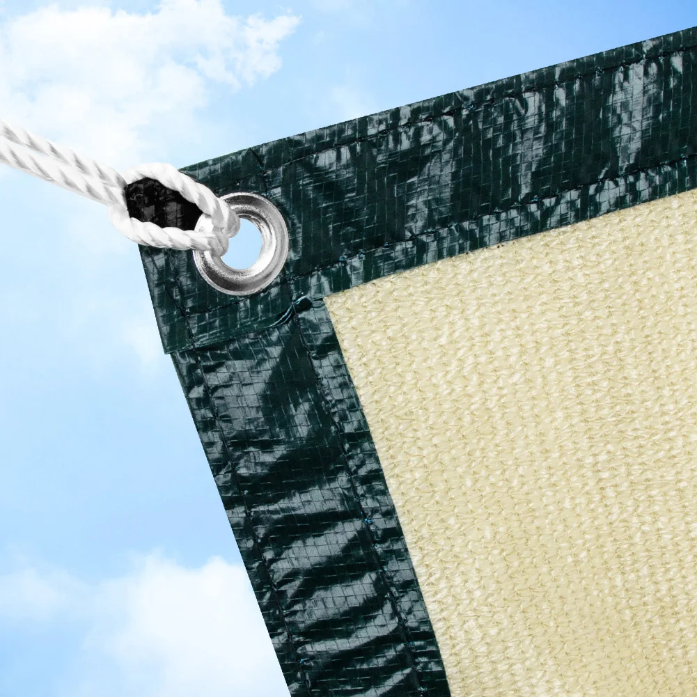 Сетчатая ткань для теней изготовлена из полиэтилена высокой плотности (HDPE) с сильным растяжением, устойчивостью к старению, коррозионной стойкостью и экологичностью. Легкий и долговечный, сетчатый и дышащий, антивозрастной. Обеспечивает 90% УФ-защиту, уменьшает солнце и ветер. Простой в использовании. Прокладки расположены вдоль всего усиленный край для легкой подвешивания. Панель будет аккуратной и приятной во время установки. Защитите растения или теплицы или домашних животных от суровых солнечных лучей и перегрева, Защитите бассейн от листьев, создайте комфортную затененную область для домашнего скота, птицеводства, сараев, питомников и семьи.