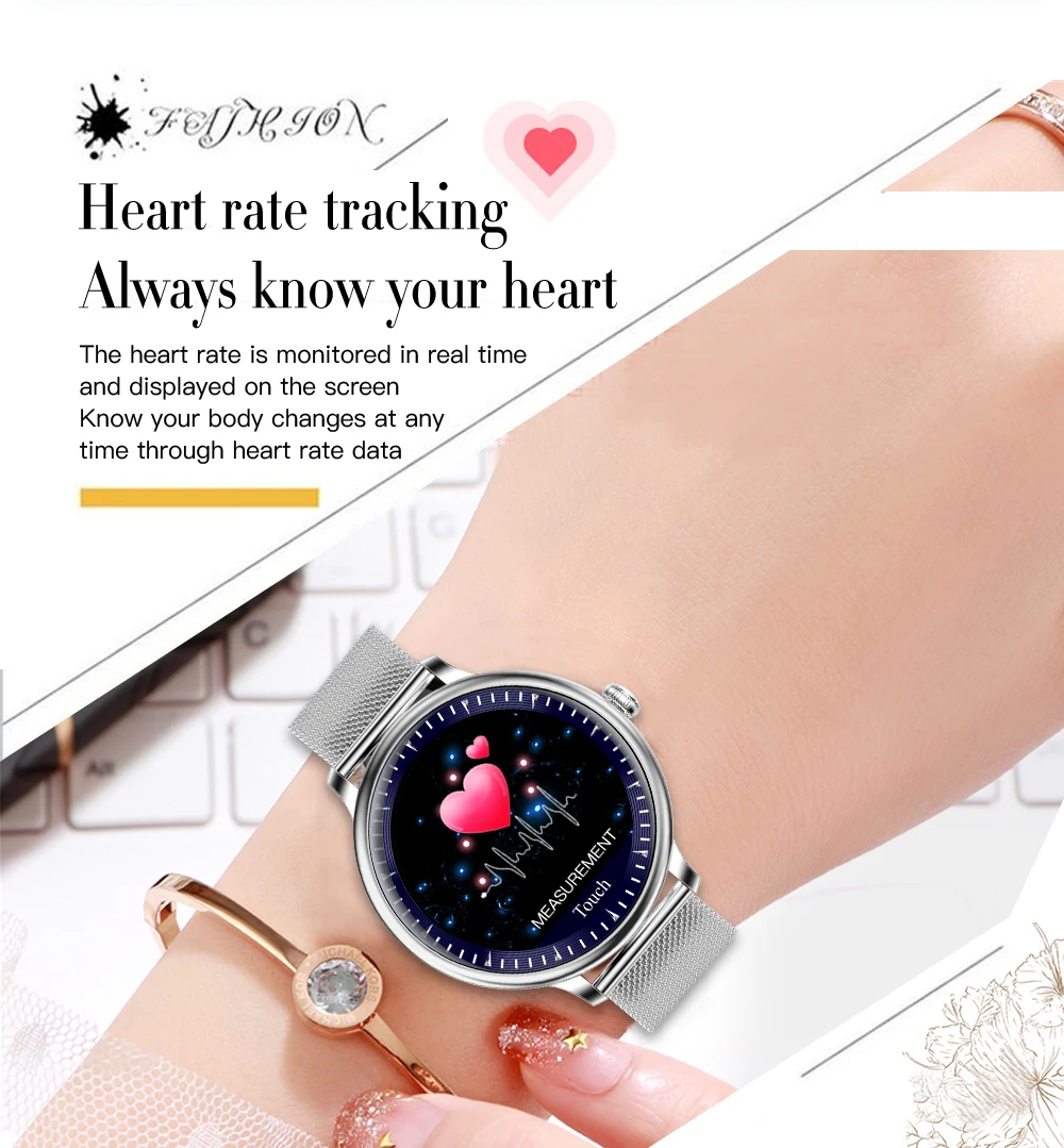 NY12 Elegant Smart Watch Women Android IOS Round Heartrate Monitor Waterproof SmartWatch For Girls 2020 New Gift For Girlfriend