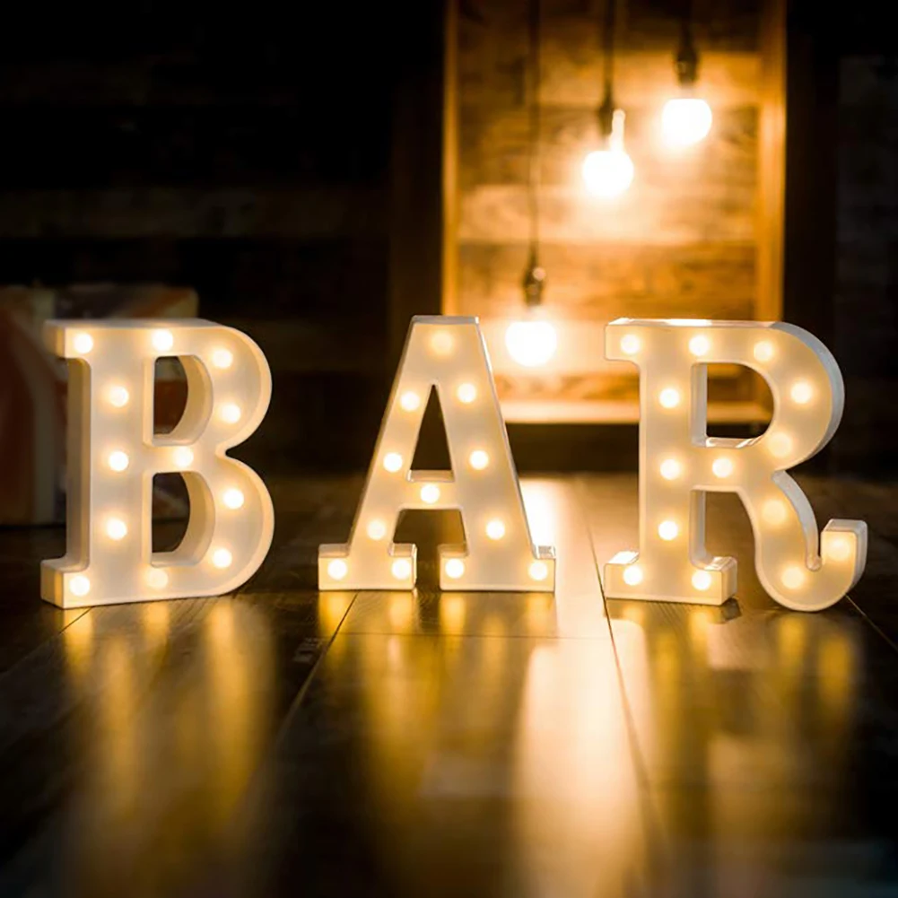 Алфавит 26-Letter 0-9 СВЕТОДИОДНЫЙ знак настенный Ночник светильник вечерние Бар Декор