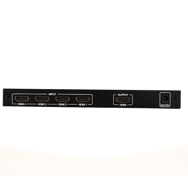 HDMI 4x1 Quad multi-просмотра высокая производительность с четырьмя HD экраном сегментации и бесшовного переключателя выхода. Он может отображать цифровой видеосигнал 4HD на одном экране и имеет различные сегменты видео, бесшовное переключение 4 HD входного сигнала синхронно. Методы управления переключателем являются гибкими, их можно переключать с помощью кнопки и ИК-управления. Это очень практичный и стабильный переключатель и прост в установке, может использоваться в основных проектах, конференц-залах и других местах.