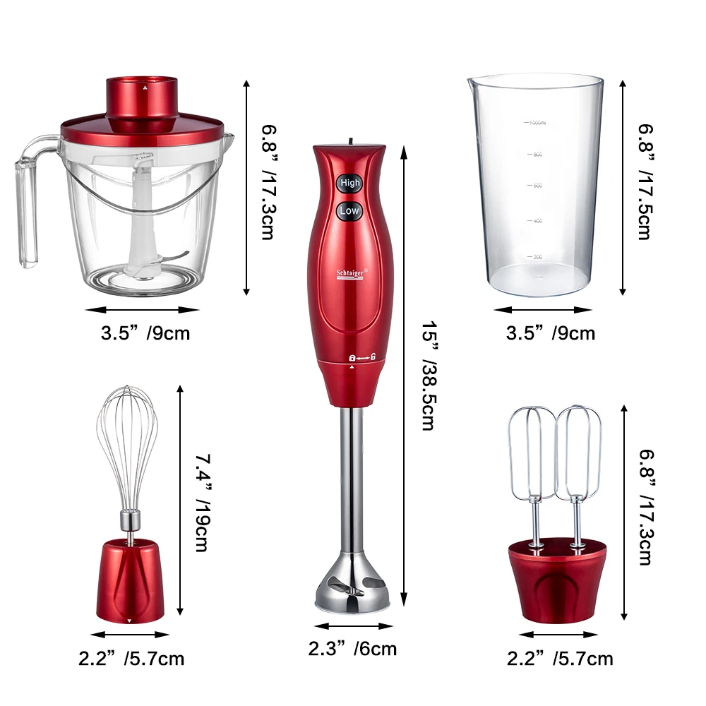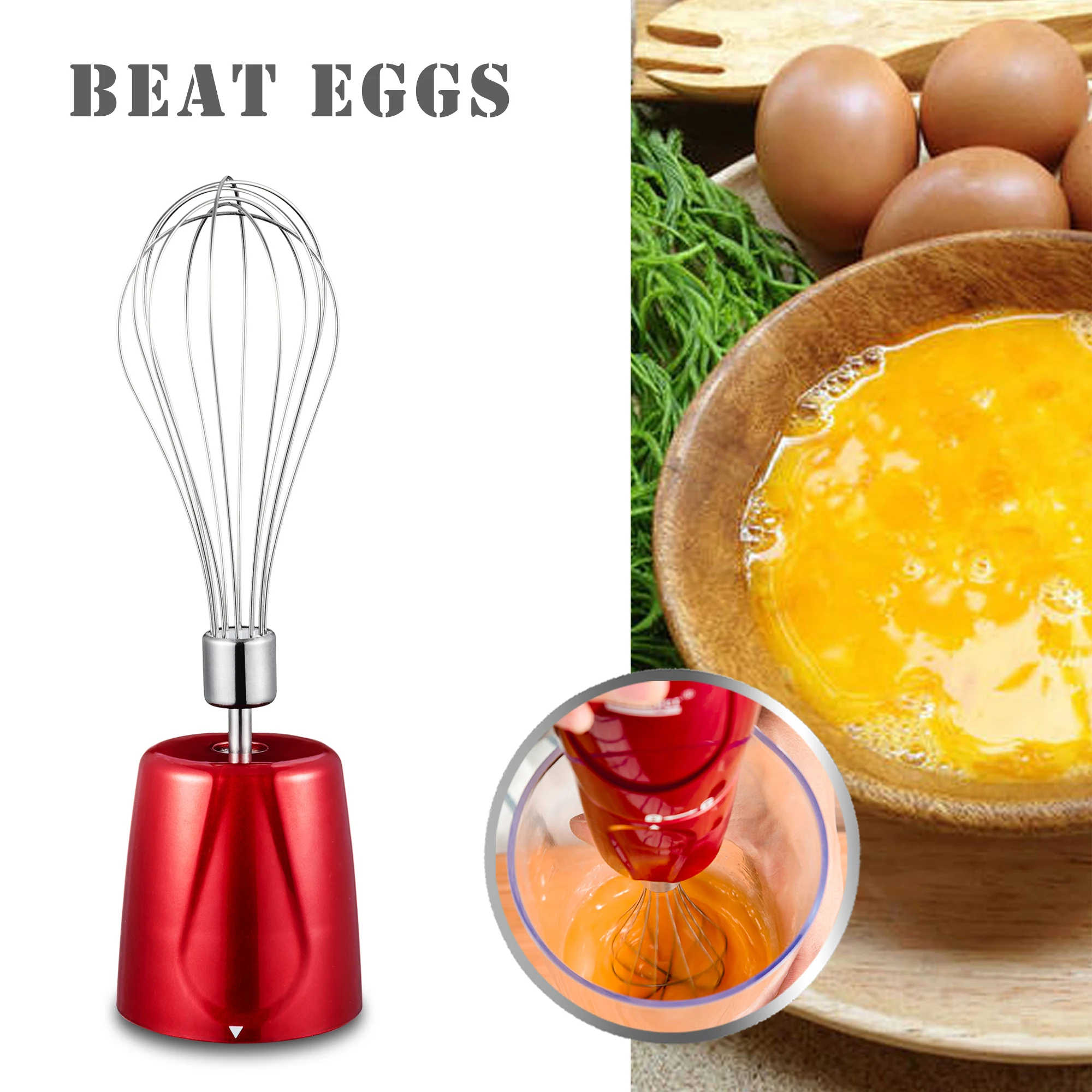Ручной блендер был разработан для смешивания, измельчения, взбивания, венчика, пюре и эмульсии в зависимости от ваших задач приготовления пищи с валом блендера из нержавеющей стали и s-образным лезвием, венчиком из нержавеющей стали, чаша измельчителя объемом 500 мл и размыватель для смешивания объемом 1000 мл.