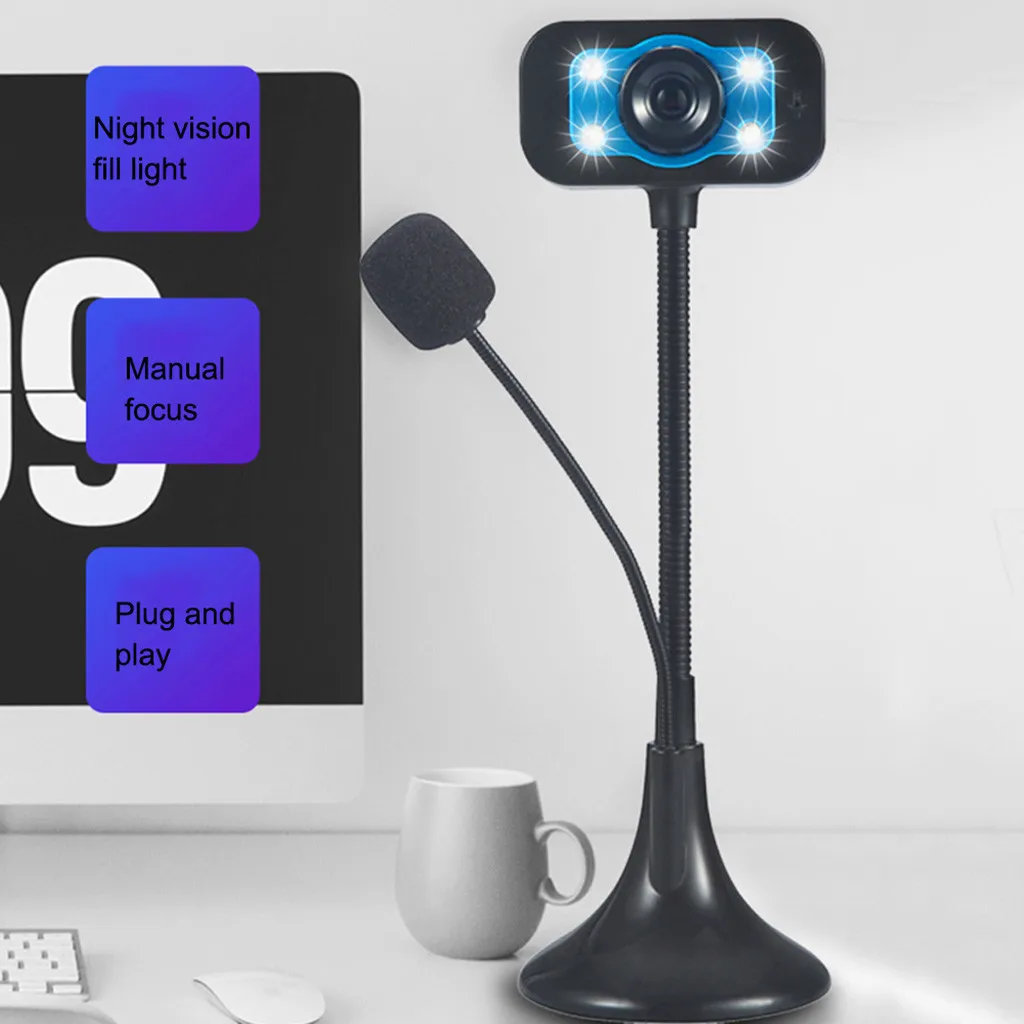 USB 2.0 Web Camera LED HD Webcam Desktop Computer PC Video Usb With Microphone For Computer Night Vision Camer Webcam Camera