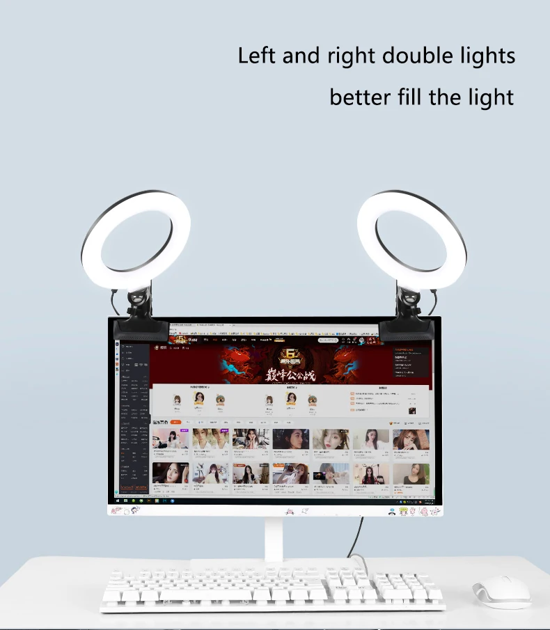 -Эта лампа имеет крепкий пружинный зажим, который используется для компьютерной трансляции, фотосъемки и ежедневного освещения. Пружинный зажим можно разместить свободно, легко носить с собой и более необязательно заполнять светильник.