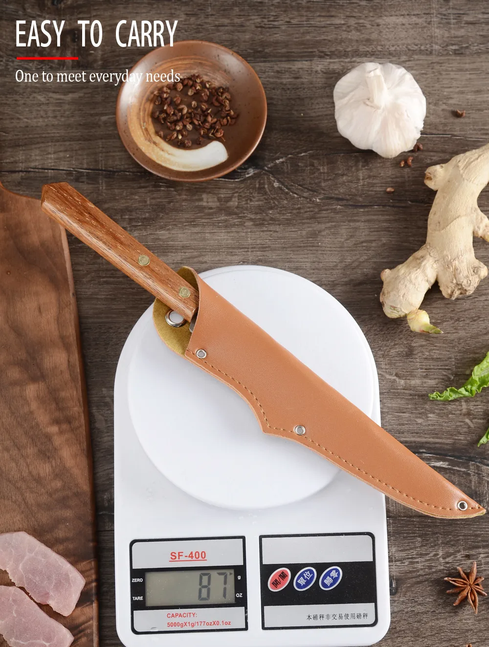 Материал лезвия ножа: высококачественная нержавеющая сталь Материал ручки: твердая древесина Дизайн ручки: полный цвет Лезвие Толщина: 1,8 мм Длина лезвия: 170 мм Полная длина: 290 мм Ширина ножа: 22 мм Особенности: острый и тонкий, лучше всего подходит для пилинга фруктов, а также служит в качестве ножа для резки мяса или овощей.
