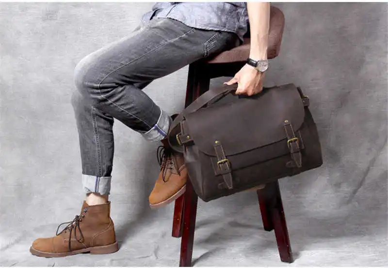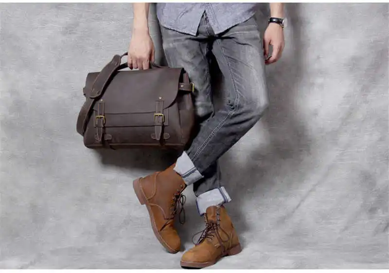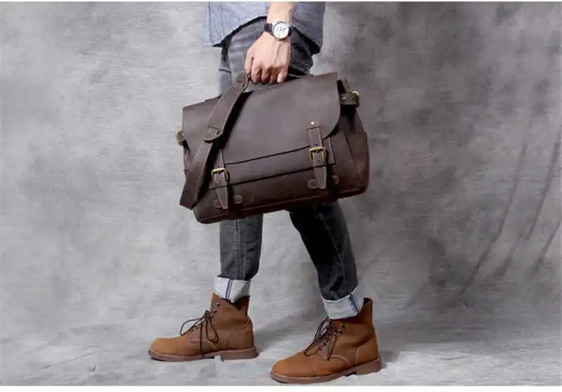 Мужская сумка-мессенджер ручной работы, Ретро стиль, Crazy Horse, Воловья кожа, мужской портфель, дизайнерская, высокое качество, натуральная кожа, мужская сумка на плечо