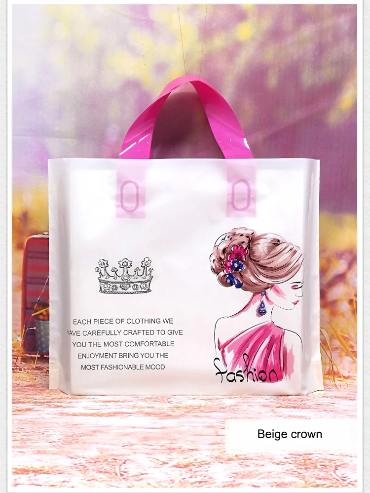 10 шт./лот, модная пластиковая подарочная сумка с ручкой, большая толстая пластиковая сумка для покупок, упаковка для одежды из бутика