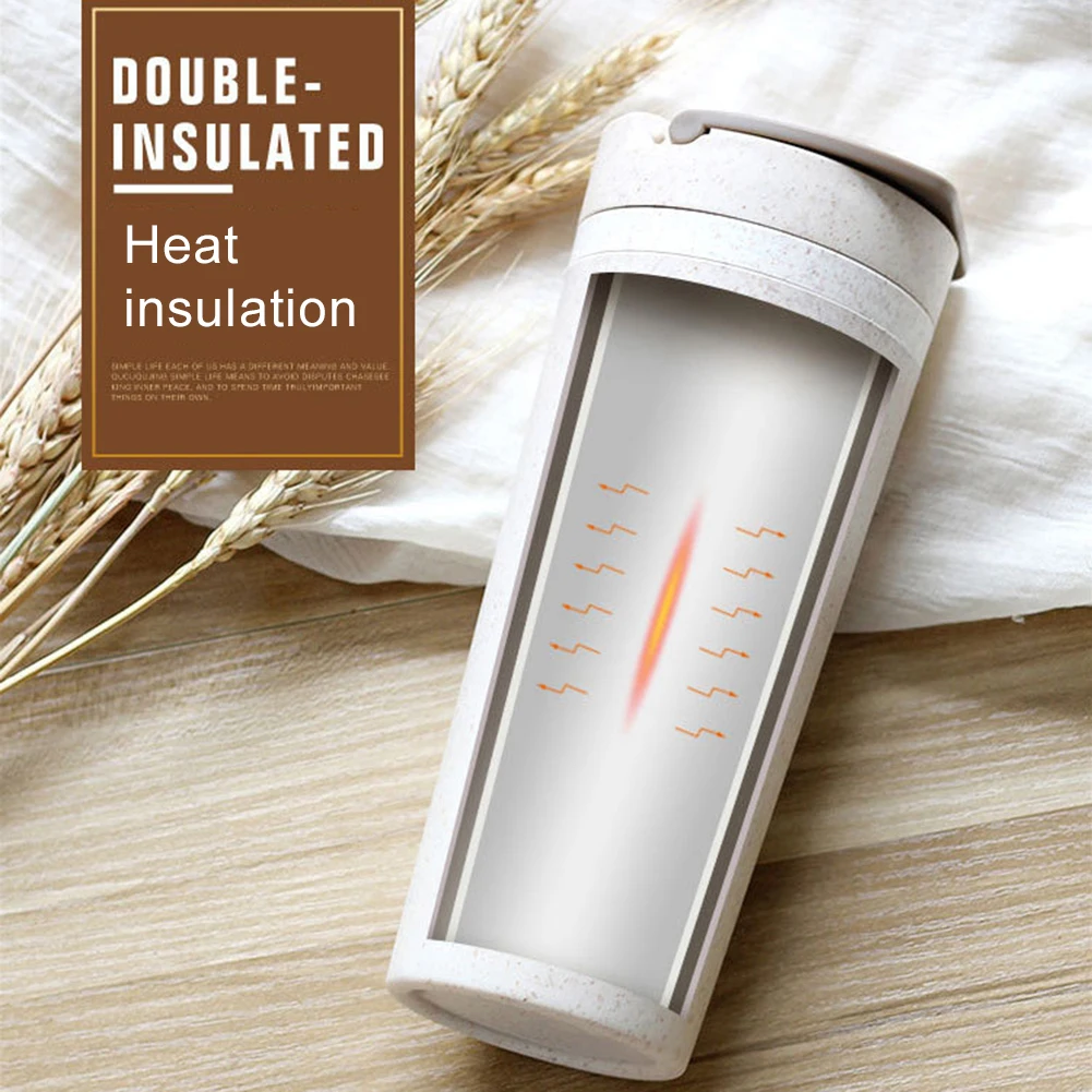 500 мл портативная Пшеничная солома двойная настенная ручка Изолированная бутылка кружка кофейная чашка для чая