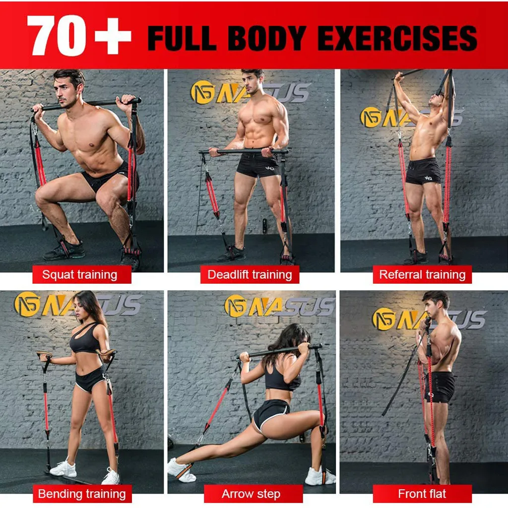 Portable Home Gym Pilates Bar System Full Body Workout Equipment Training Kit