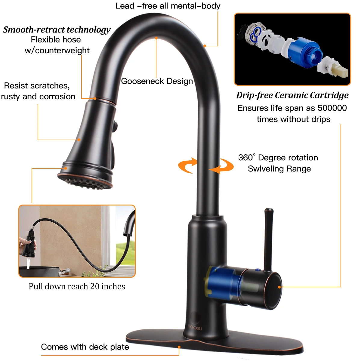 1. Материал: основание из цинкового сплава/ручка + медные внутренние детали + большой изгиб из нержавеющей стали + душ с помпонами + декоративная панель из АБС-пластика