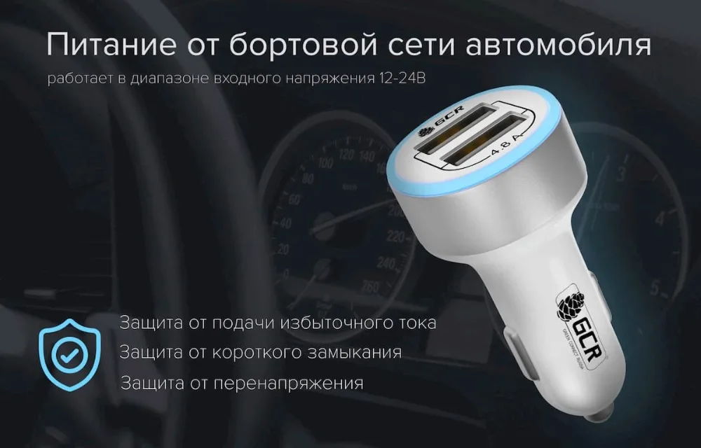 GCR Зарядка в авто прикуриватель автомобиль 4.8A 2 USB car charger for Samsung Xiaomi iPhone в машину для iPhone зарядное устройство для телефона