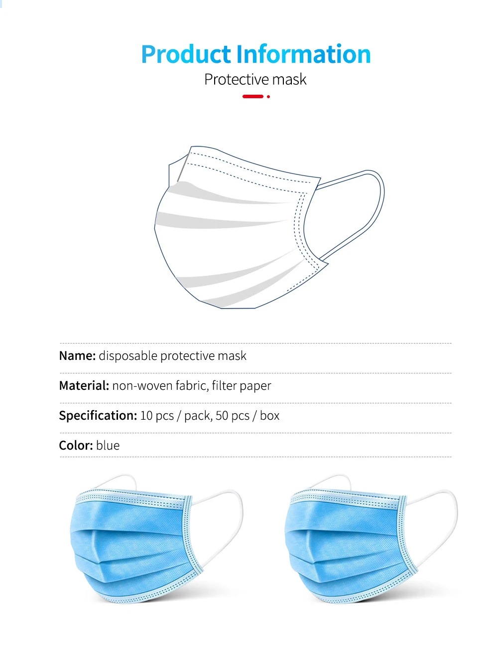 50 шт. маска для защиты от капель одноразовая 3-слойная маска Нетканая ткань дышащая мягкая маска от пыли для лица
