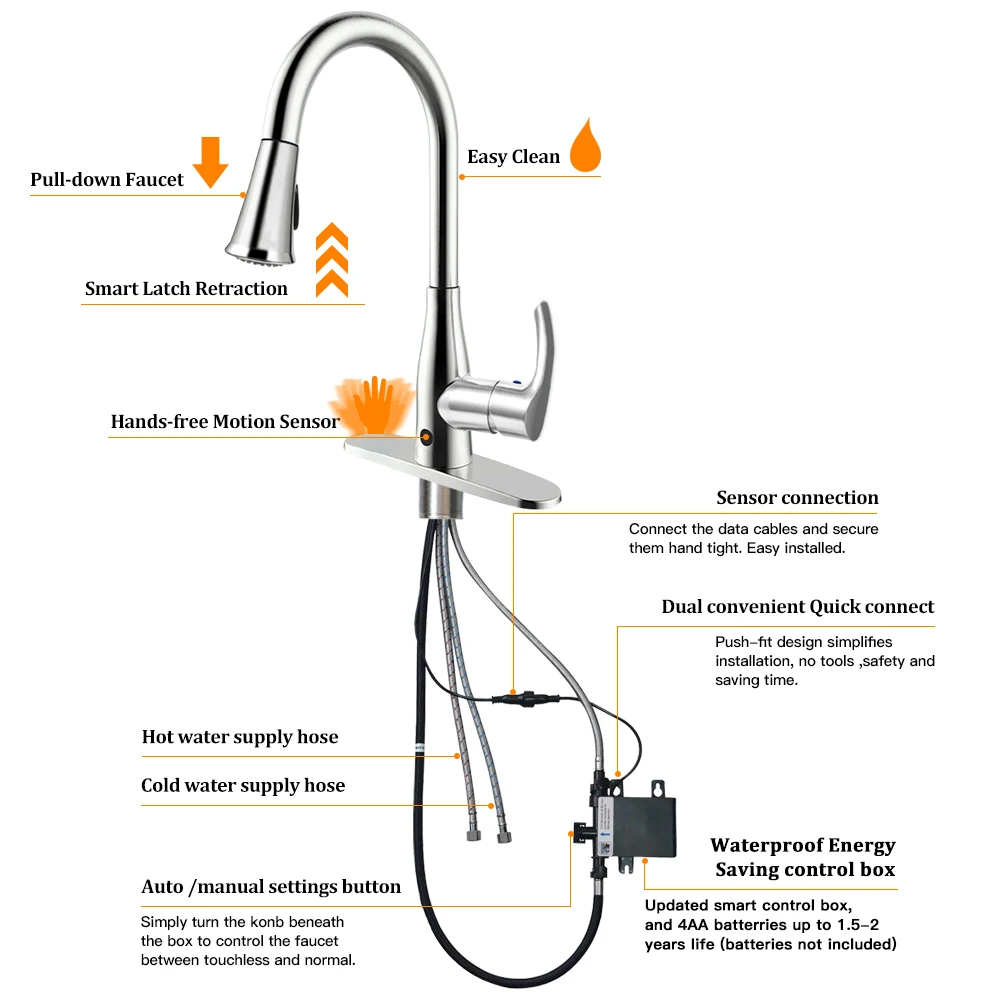 7. Инфракрасный Датчик: автоматически выключается без датчика в течение 3 минут (экономия воды и предотвращение ложной индукции)