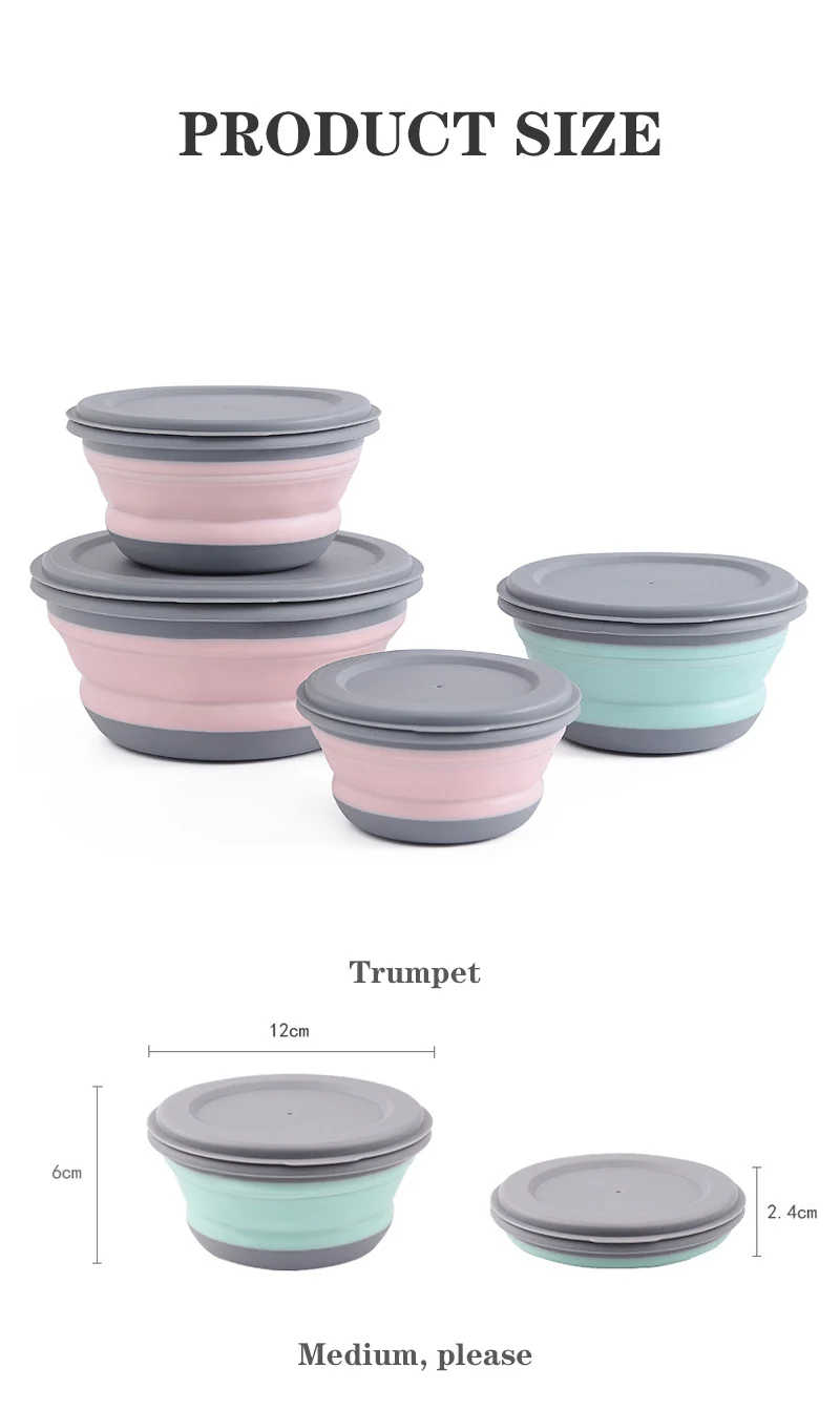 Характеристика: 1. Пищевой материал, здоровый и безопасный. 2. Легко моется, в посудомоечной машине. 3. Складной и герметичный. 4. Запрещается использование микроволновых печей Спецификация: Наименование товара: складная силиконовая коробка для завтрака Материал: пищевой силикон + ПП Размер: как показано на картинке Емкость: 360/600/900 мл Список продуктов: трехсекционный складной набор чаш * 1