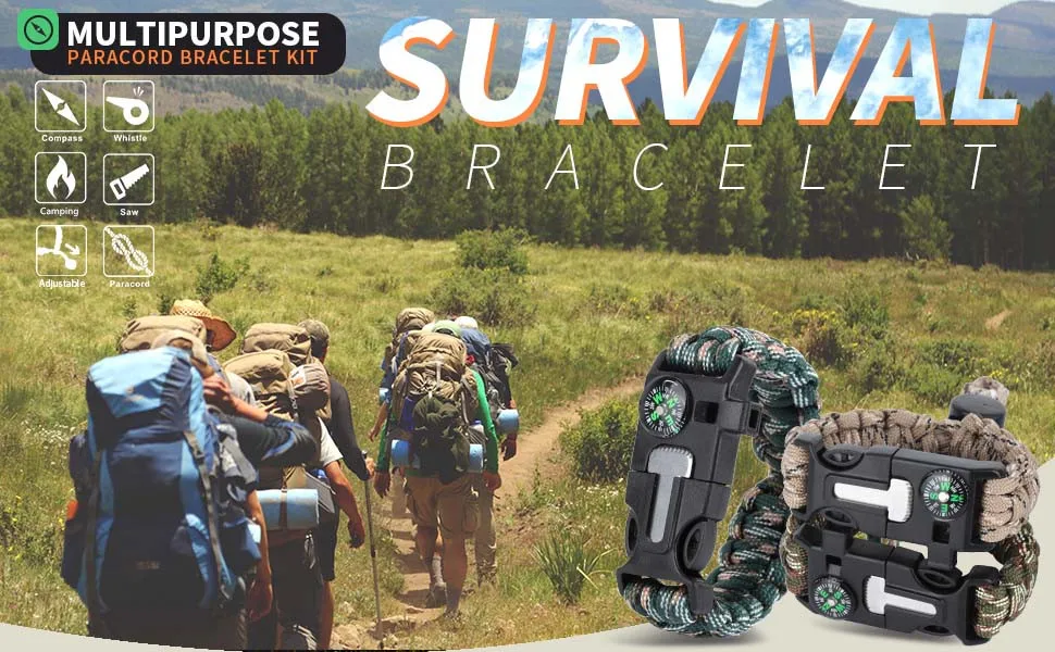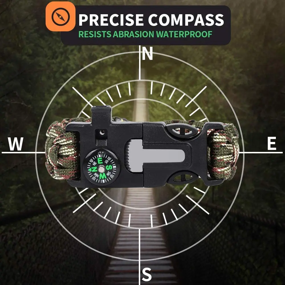 Item Type : Survival Paracord Bracelet Bracelet length: 19-23.5CM Meterial : 7-core Paracord Features:Compass, thermometer, whistle.
