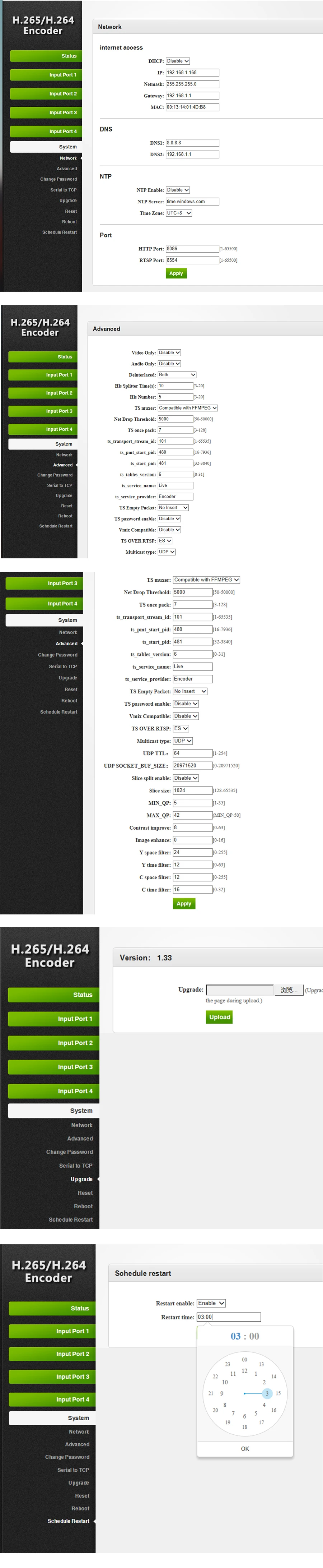 Для каждого выхода SDI к IPTV поддержка выходных данных 4 группы TS по ip-потокам (для каждой группы доступны протоколы HLS, HTTP, RTSP, UDP и RTMP). С 4 различными разрешениями (до 1080P @ 60fps) и 4 различными битрейтами для удовлетворения различных размеров экрана и различных условий полосы пропускания