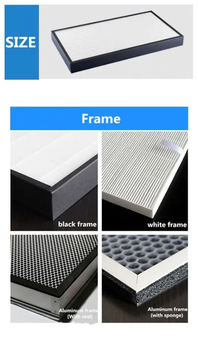 Мы предоставляем индивидуальные услуги, вы должны сообщить нам размер и с рамкой или без рамки. Однако, если вы не свяжетесь с нами и не разместите заказ напрямую, будет отправлен Размер HEPA по умолчанию без рамки. Также если вам нужен хлопковый фильтр, угольный фильтр или составной фильтр, пожалуйста, сообщите мне.