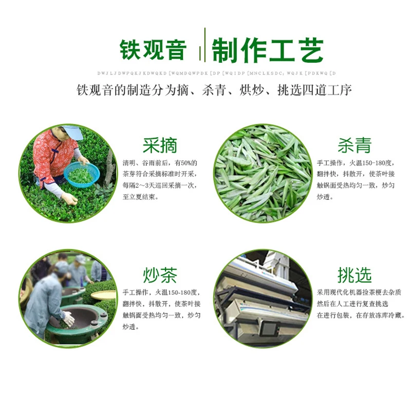 Tieguanyin-это не только вид драгоценного натурального напитка, но также имеет хорошие косметические и медицинские функции. Tieguanyin содержит высокие уровни аминокислот, витаминов, минералов, чайных полифенолов и алкалоидов. Он имеет различные питательные и фармацевтические ингредиенты. Он имеет функции очищения сердца и очищения глаз, стерилизации воспаления, снижения веса и красоты и замедления старения. Он хорошо известен и хорошо продается в Гонконге, Макао, Тайване, Юго-Восточной Азии, Японии, Европе и Соединенных Штатах и глубоко любим потребителями.