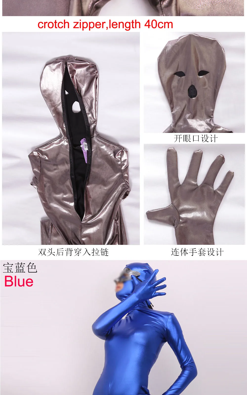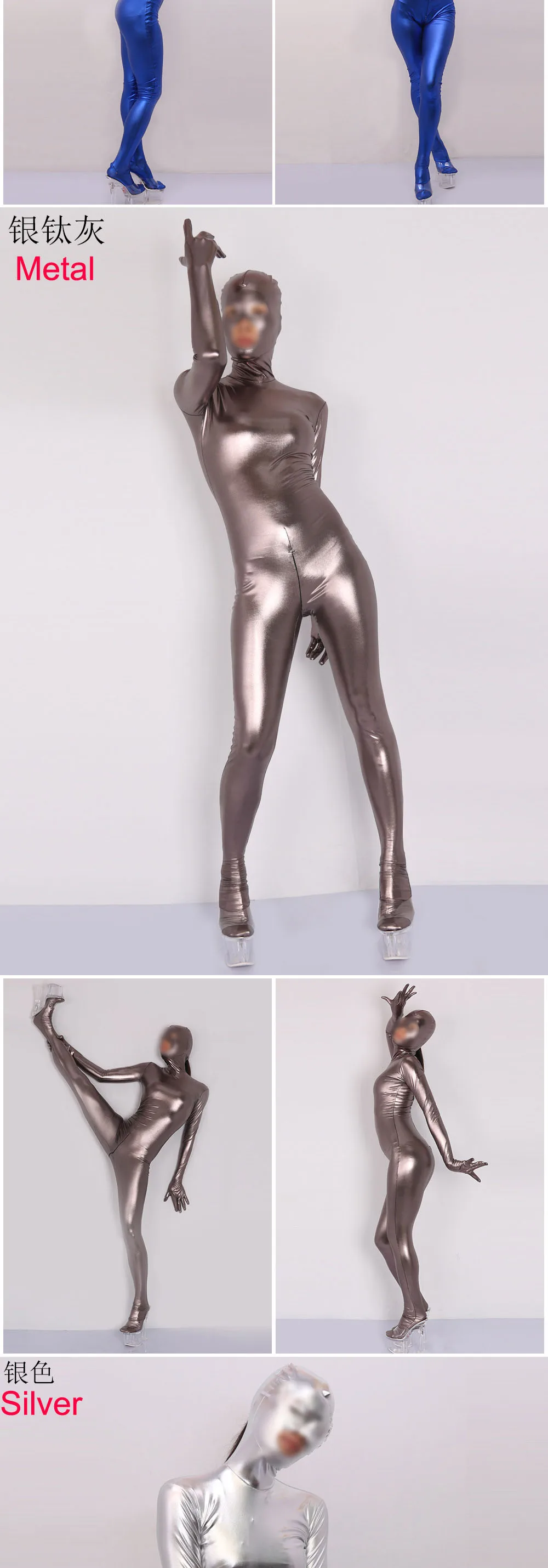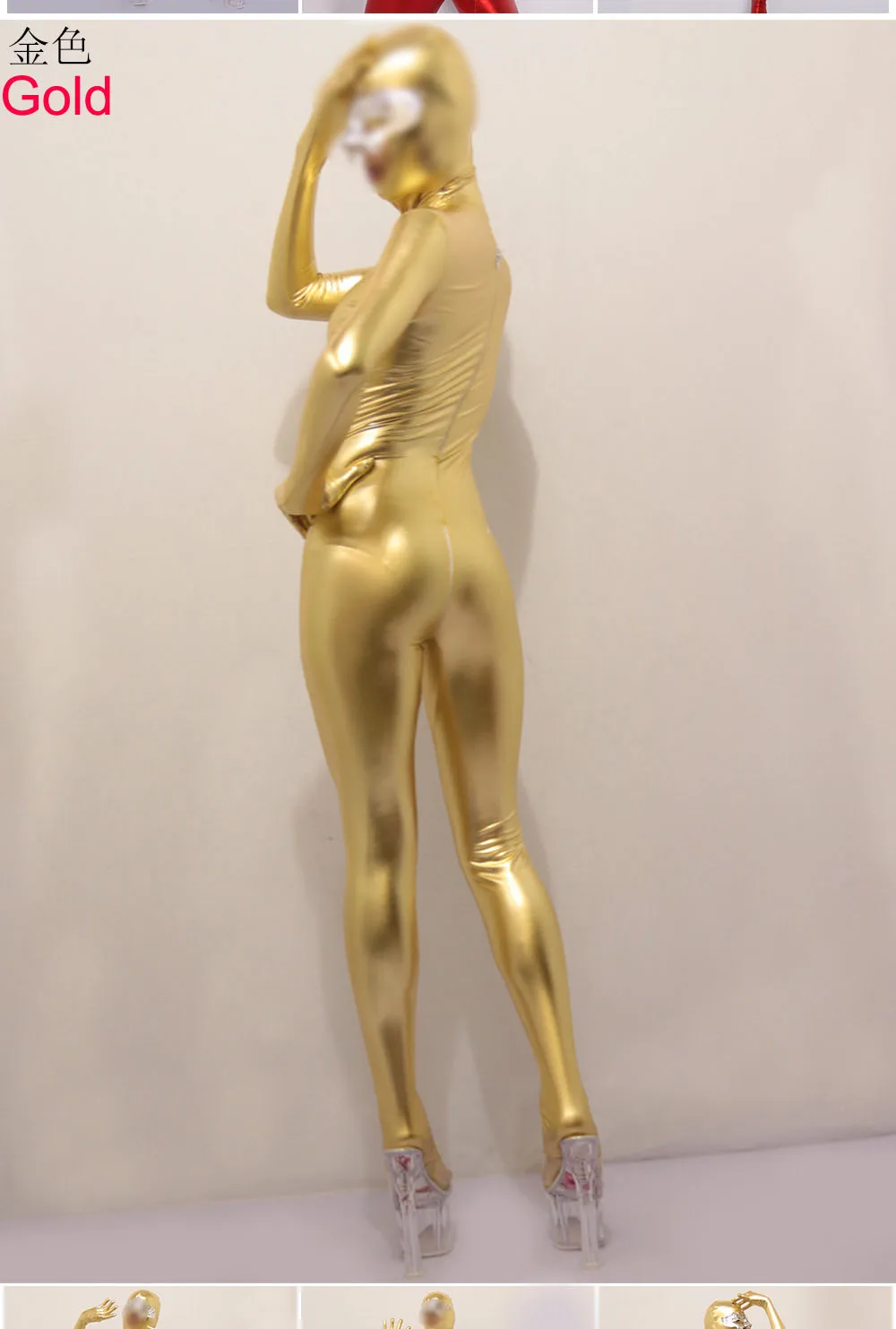 Женские комбинезоны из искусственной кожи для выступления на сцене, цельные колготки, косплей на молнии, боди с открытой промежностью форма, полная куртка, комбинезон Zentai, все включено