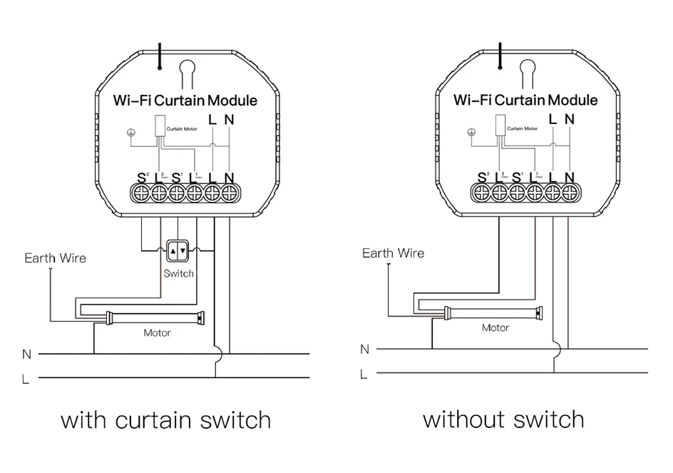 О: вы все еще можете управлять устройством, подключенным к модулю штор, с вашим традиционным переключателем штор, и как только wifi снова активен, устройство, подключенное к модулю штор, автоматически подключается к вашей сети Wi-Fi.