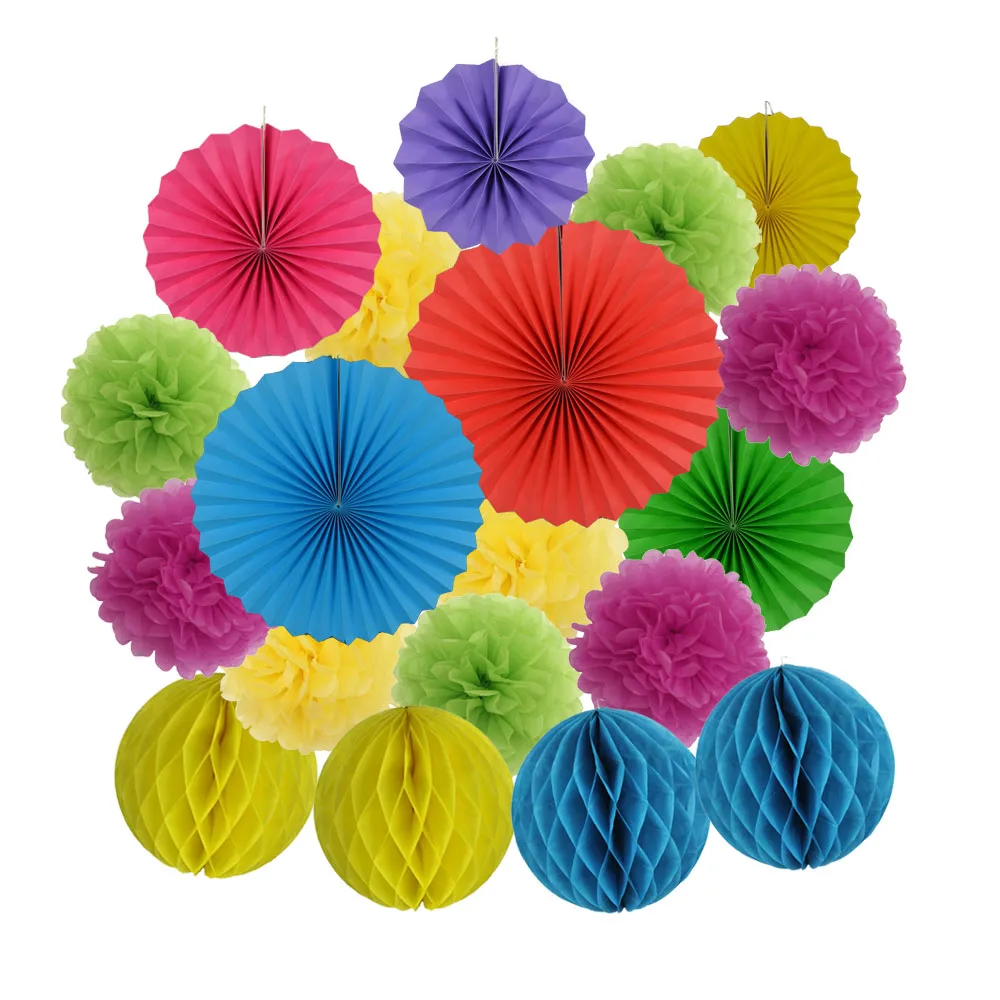 Содержание: 1 комплект = 1 комплект = 2 вентилятора 8 дюймов + 2 вентилятора 12 дюймов + 2 вентилятора 16 дюймов + 9 помпонов 10 дюймов + 4 сота 8 шт.