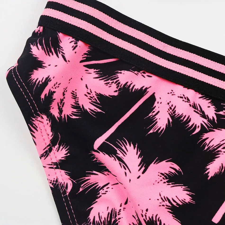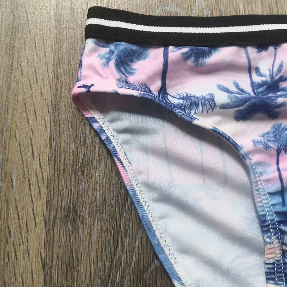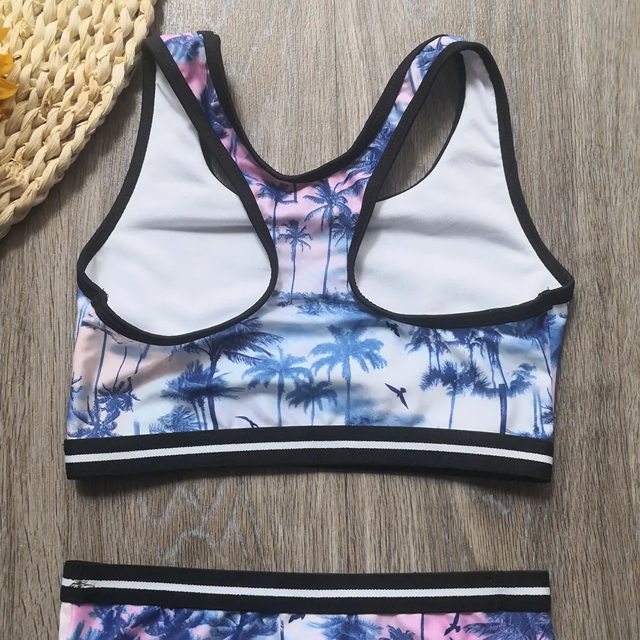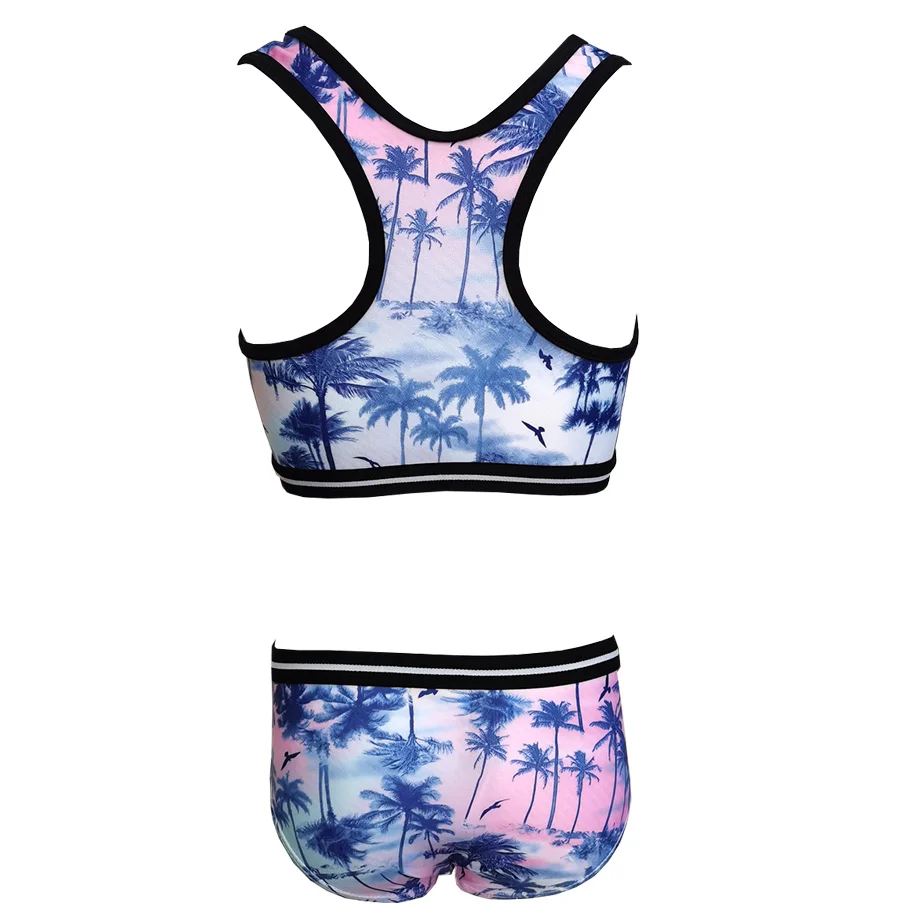 Купальник для девочек с пальмовыми пальмами, комплект бикини с кроп-топом для девочек, детский купальник из двух предметов для подростков, купальный костюм с подкладкой для девочек, пляжная одежда