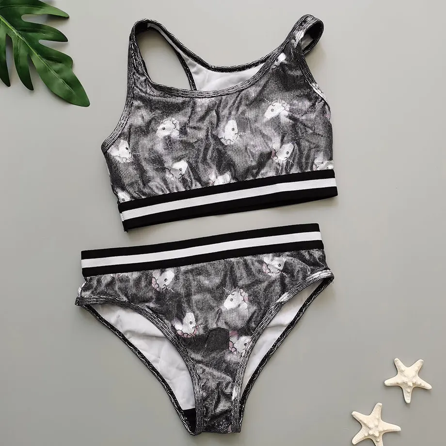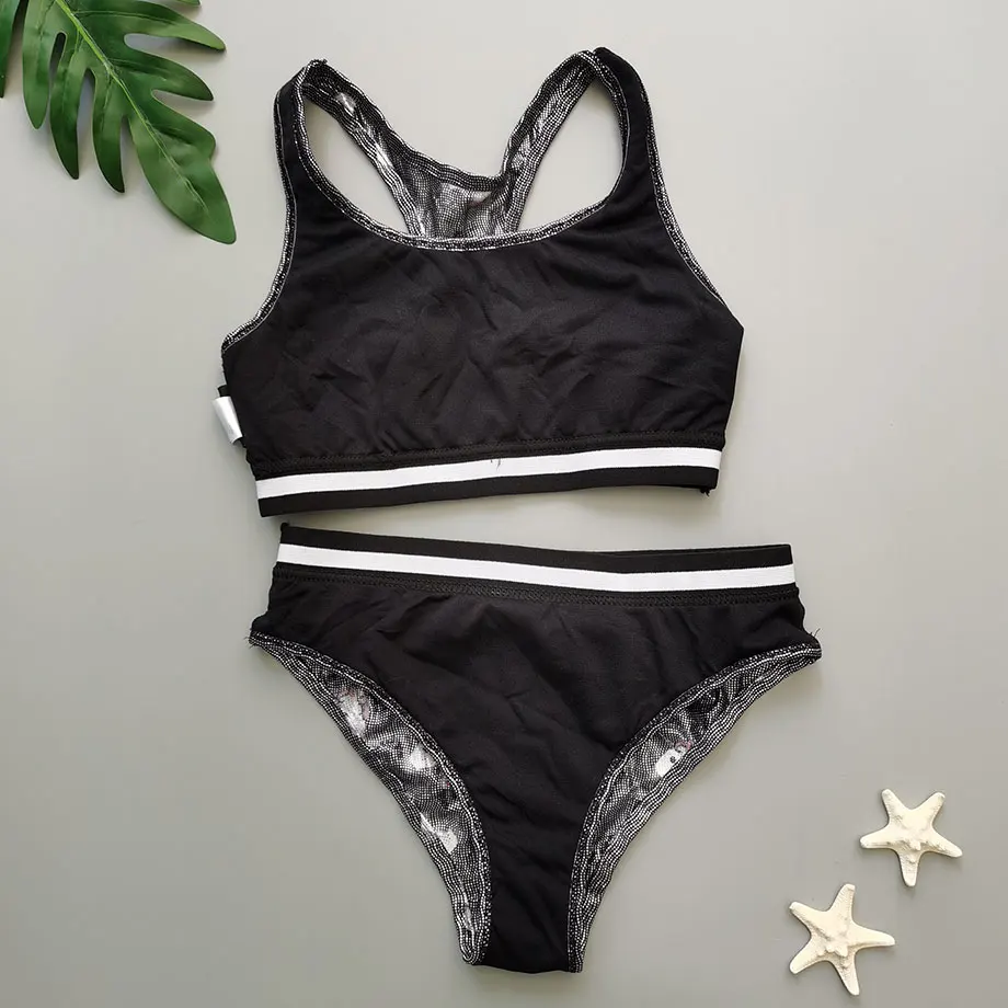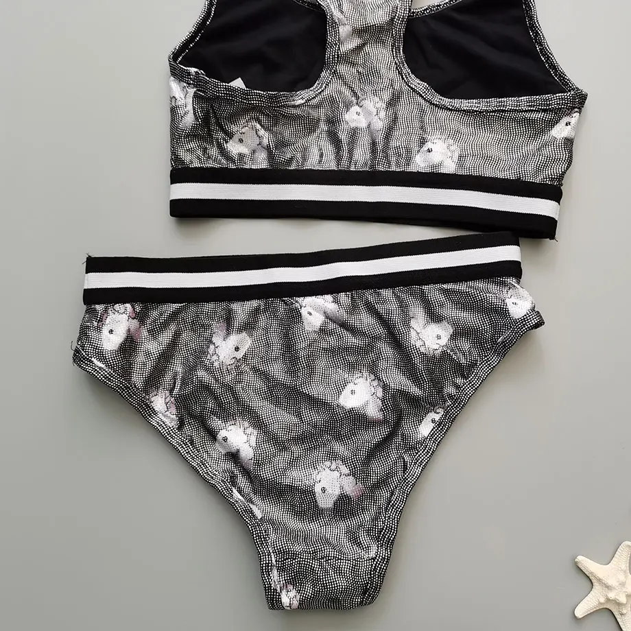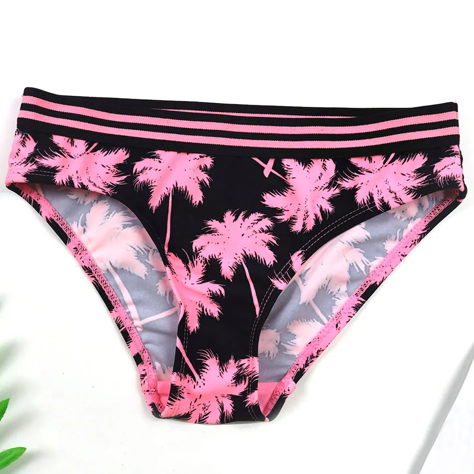 Купальник для девочек с пальмовыми пальмами, комплект бикини с кроп-топом для девочек, детский купальник из двух предметов для подростков, купальный костюм с подкладкой для девочек, пляжная одежда