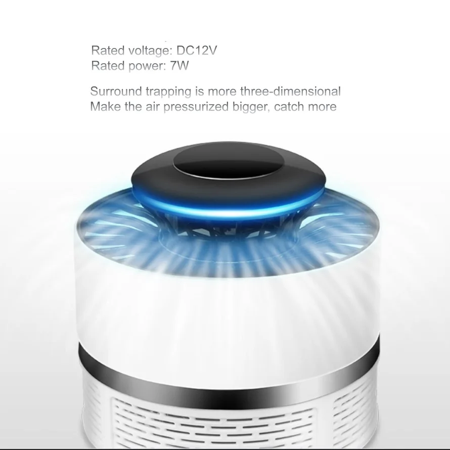 7w Led Mosquito Killer Lamp UV Night Light Three-dimensional mosquito control USB Light speed media electronic mosquito killer lamp - Product name:Light speed media electronic mosquito killer lamp - Color: White - Material: ABS - Size: 7.5 x 8.5 x 12 cm -cable:about 50mm - Rated Power: 7W - Rated Voltage: 220V - Input Voltage: 12V - Area: 15~25 squre meter - Powered by: USB - Working principle: Light speed media electronic, Three-dimensional mosquito control - Scope of application: home interior, bedroom, kitchen, courtyard, etc. Feature: - Real energy saving and low consumption. - The product design is exquisite, elegant and practical, and the decorative function is the best choice for home. - Low decibel quiet enjoy a stable environment without mosquitoes. - This product is intended for indoor use only or in places where it will not rain or splash. - Removable mosquito storage box, anti-escape design, easy to clean - Do not touch the pins whe. Keep the surrounding environment dry during work