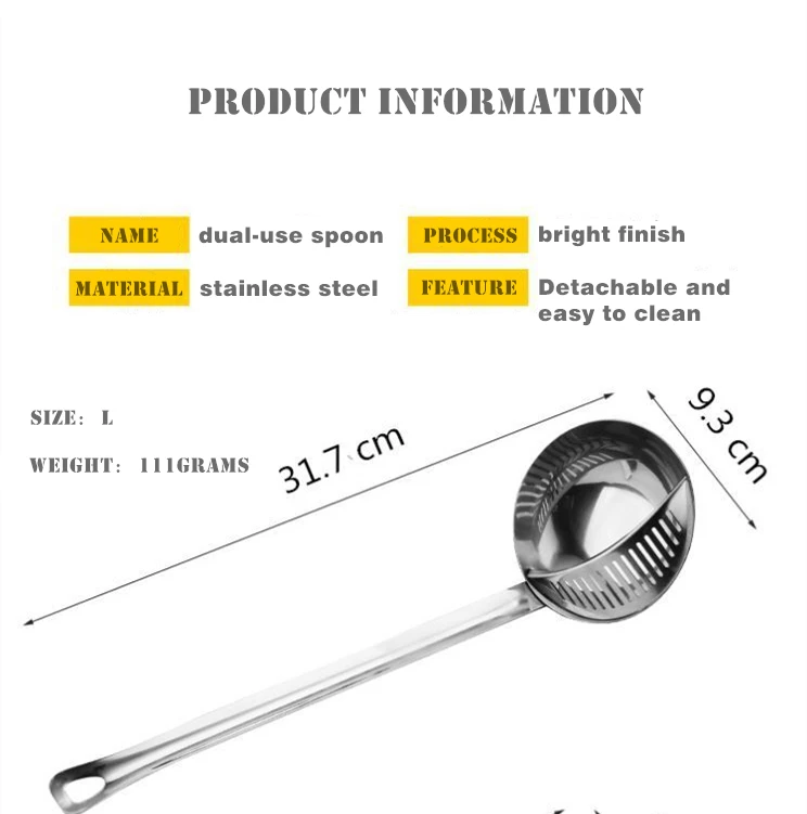 Название: ложка двойного назначения Процесс: яркая отделка Материал: утолщенная нержавеющая сталь Особенность: съемный и легкоочищающийся Размер: S:27*7,7 см/L: 31,7*9,3 см Вес: 72/111 г Примечание: 1. Допускается погрешность в 0-3 см из-за ручного измерения. Пожалуйста, убедитесь, что вы не возражаете, прежде чем сделать ставку. 2. В связи с разной конфигурацией разных мониторов изображение не отображает фактический цвет товара. Спасибо!