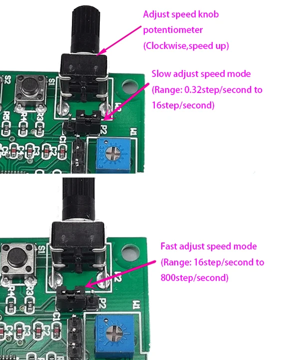 1. Обычный режим 1: кнопка S1 start stop, кнопка S2 вперед и назад, управление скоростью потенциометра W2. Если требуется разворот предела, два ограничительных переключателя могут быть подключены к контакту P3, И вал движения двигателя установлен с контактами, так что двигатель будет возвратно-поступательным в пределах хода между двумя ограничительными переключателями. 2. Обычный режим 2: S1 вперед пусковую кнопку, S2 переключает пусковую кнопку, нажмите любую кнопку, чтобы остановить. W2 регулировка скорости потенциометра. Если требуется ограниченная остановка, Два концевых выключателя es могут быть подключены к контакту P3, так что двигатель перестанет двигаться, когда он коснется концевого выключателя, и двигатель будет обращен вспять после нажатия противоположной кнопки. 3. Режим пробежки: S1 нажимает вращение вперед, отпускает стоп, S2 нажимает обратное вращение, отпускает стоп, и потенциометр W2 регулирует скорость. Если требуется ограничительный стоп, верхний ограничительный переключатель может быть подключен к P3. 4. Автоматический режим круглого хода: запуск и остановка S1, переключение S2, скорость потенциометра W2 и потенциометр W1 настраивают автоматические шаги круглого хода. После запуска двигатель автоматически бежит назад и вперед в пределах количества шагов, отрегулированных W1.