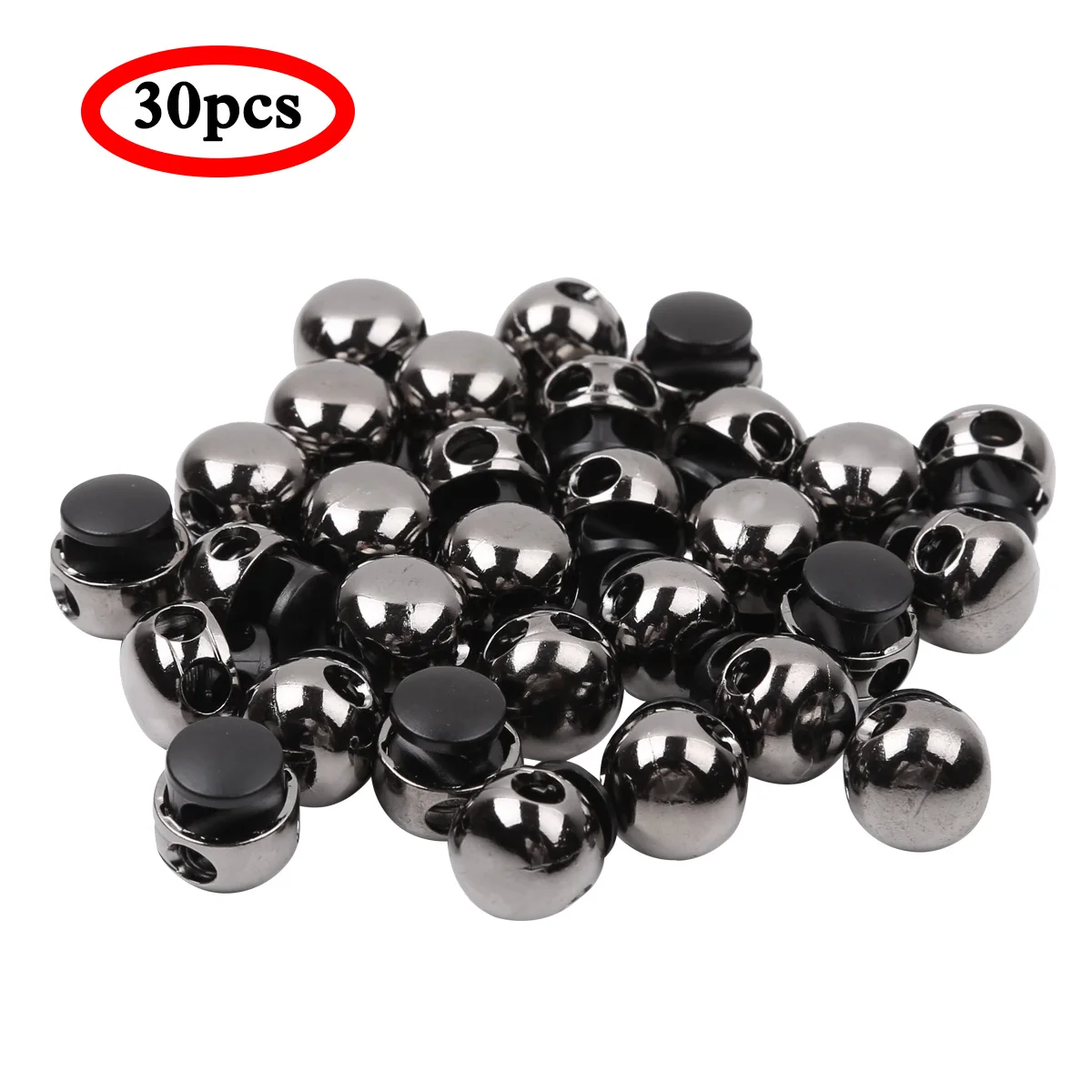 30 замочек шнура прочный скользящий металлический замочек с двойным отверстием круглый шаровой багажный шнурок шнурка затягивающийся шнурок фиксатор шнурка30 замочек шнура прочный нескользящий металлический замочек с двойным отверстием круглый шар для багажа шнурок конец застежки шнурка пробка