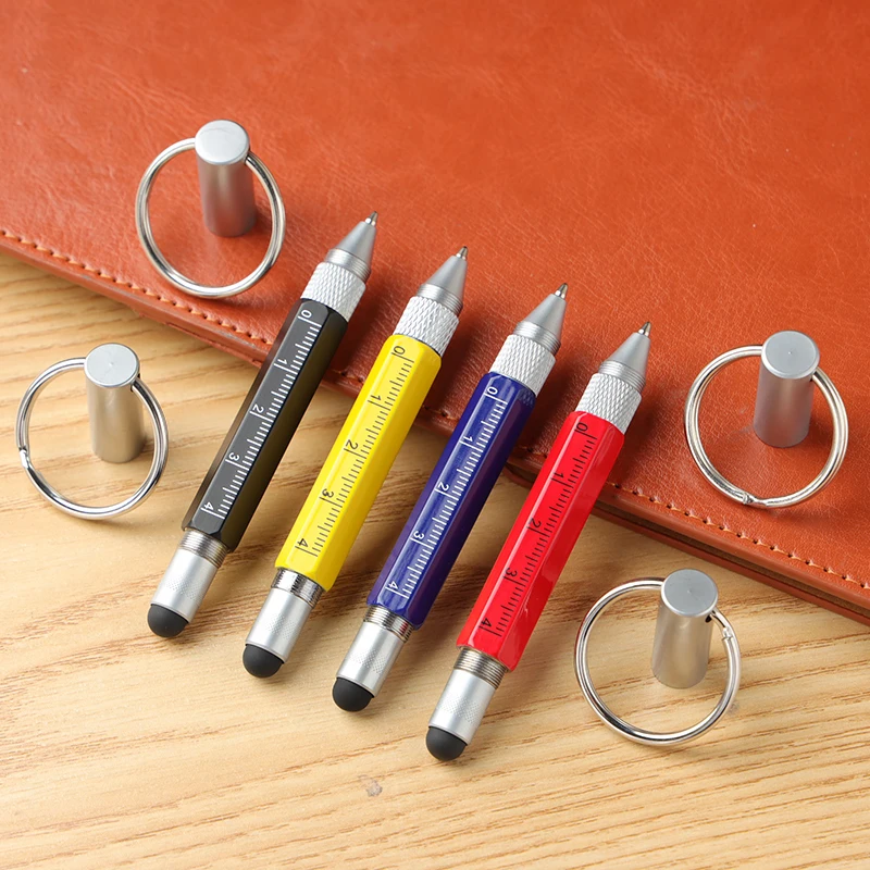 Мини многофункциональная шариковая ручка 6 в 1 высокое качество Стилус Шариковая сенсорная ручка-отвертка металлическая маленькая линейка ручки брелок гелевая ручка