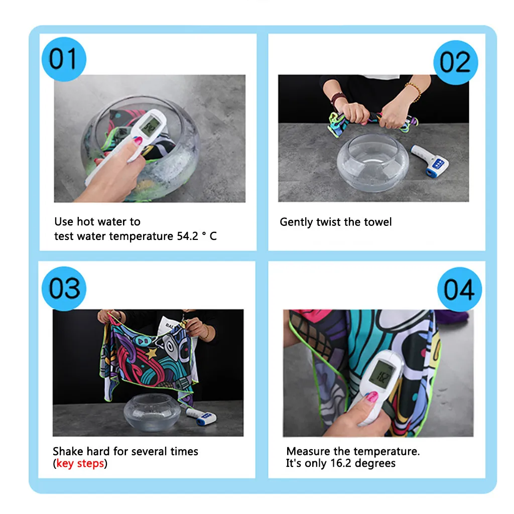 Инструкции по использованию: Слегка после замачивания в воде, встряхните несколько раз, чтобы достичь охлаждения Эффект