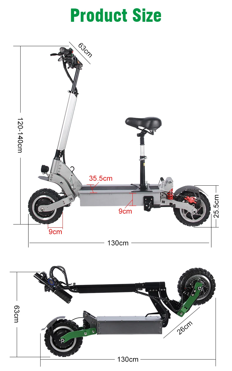 · Максимальная скорость: 1000 км/ч; · Режим скорости: 3 ° («средний, низкий»); · Мощность двигателя: 7000 (+ 3500 Вт * 2) двойная; Литиевая батарея: бренд 32ah LG; · Пробег: 100-150 км; · Максимальная нагрузка: 200 кг; · Грузоотправитель: cc75v 3A; Время нагрузки = 10-15 часов; · Стандартный размер: 130x58x132 см; · Размер складывания: 125x28x50 см; · Размер платы: 153x34x66 см; · Вес нетто: 48 кг; · Цвет: черный/серебристый/персонализированный