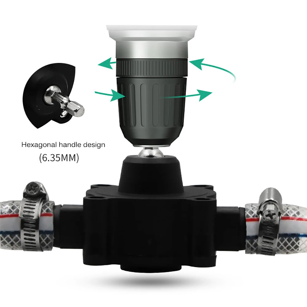 Водяной насос с 6,35 шестигранным хвостовиком питается от ручная дрель, который может работать без электрического силового кабеля, как вы хотите.
