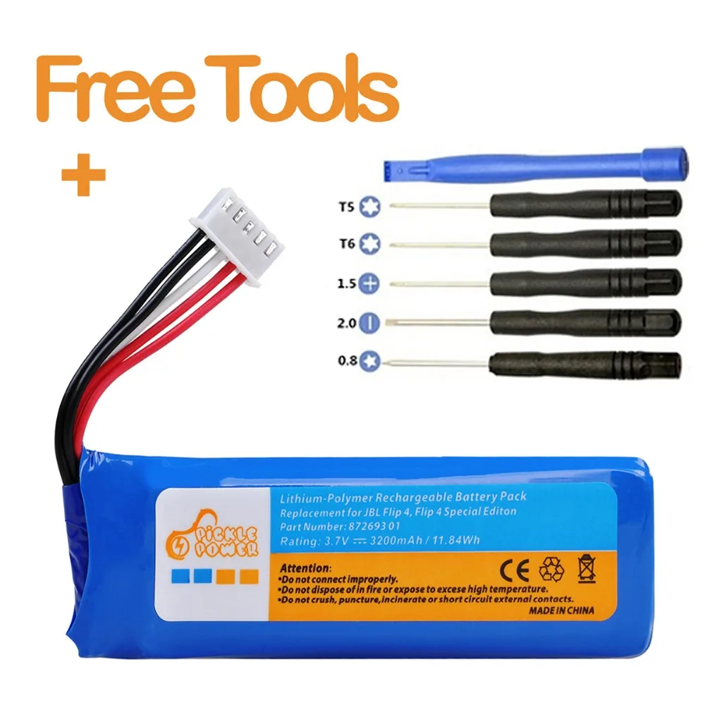 Аккумулятор Pickle Power для JBL Flip 4, Flip 4 Special Edition, номер детали GSP872693 01 с инструментами для установки.