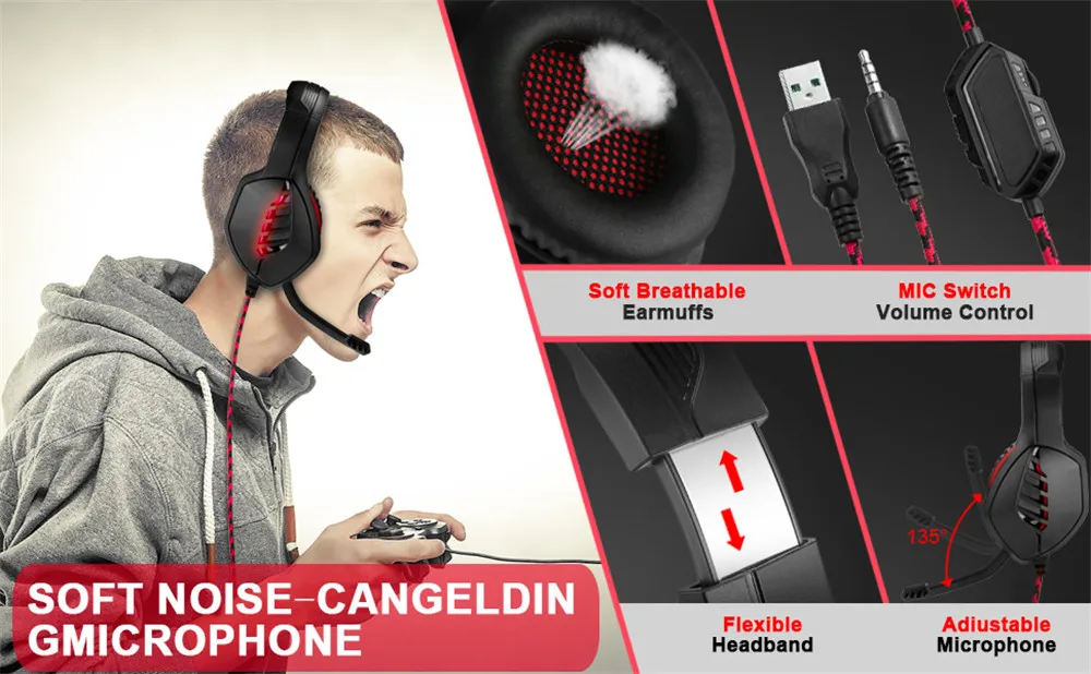 ASKMEER J1 игровая гарнитура с микрофоном светодиодный светильник для PS4, ноутбука, ПК, телефона